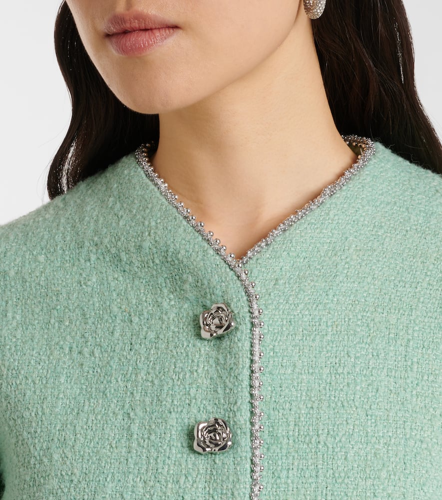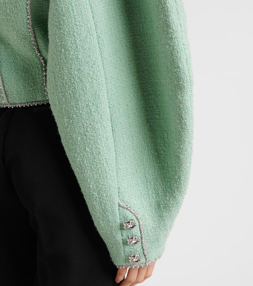Material: 50% polyester, 50% wool. Care instructions: dry clean. Made in China. Designer color name: Spray. Lining: 97% viscose, 3% elastane. Closure: snap-buttoned front. Shop the latest Rotate Wool Jackets.