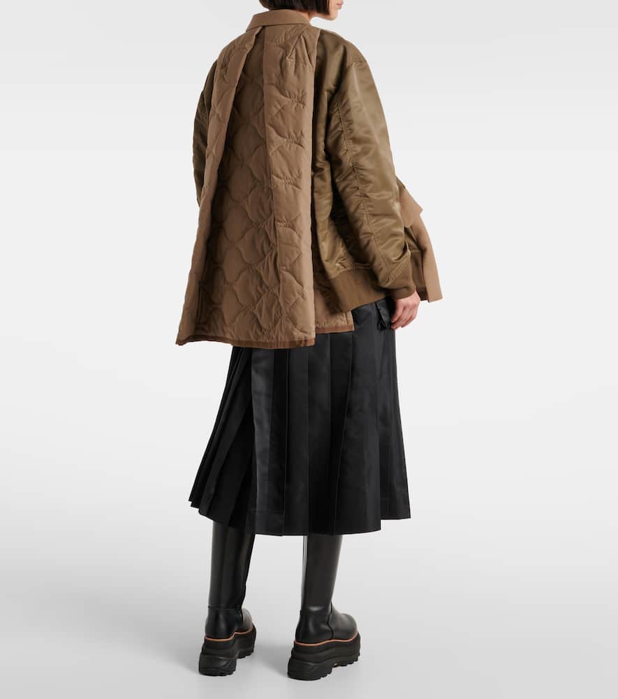 Material: 100% wool. Care instructions: dry clean. Made in Japan. Designer color name: Beige×Khaki. Trim: 100% nylon. Closure: buttoned front. Pockets: patch, snap-buttoned pocket. Shop the latest Sacai Blazers.