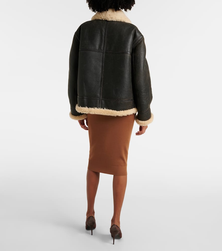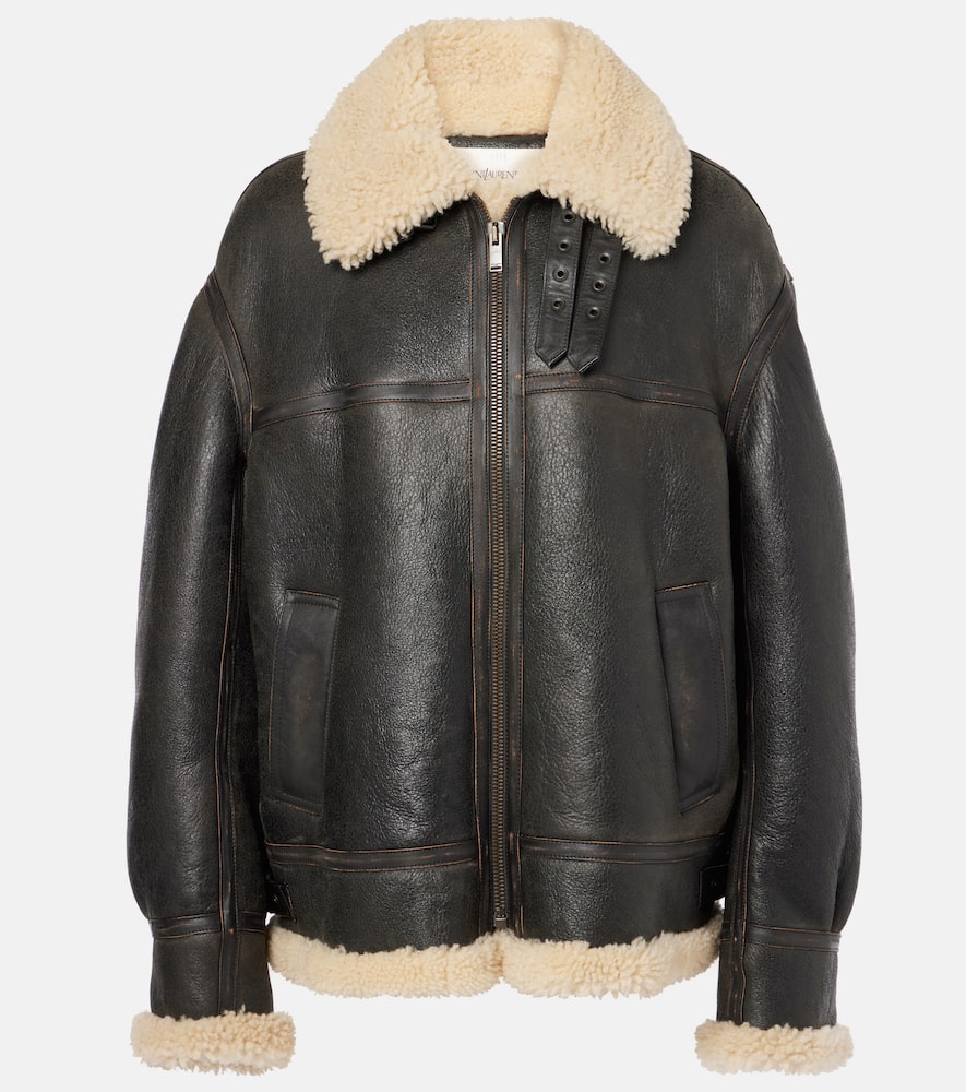 Material: 100% leather. Care instructions: specialist clean. Made in Italy. Designer color name: Marron Fonce . Closure: zipped front. Pockets: slant pockets. Lining: 100% shearling. Shop the latest Saint Laurent Shearling Jackets.