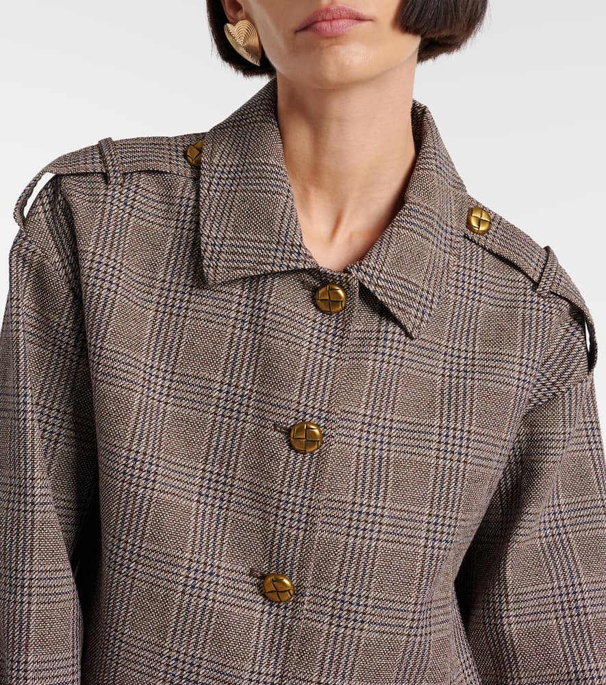 Material: 76% cotton, 24% linen. Care instructions: dry clean. Made in Italy. Designer color name: Brown. Closure: buttoned front. Pockets: slant pockets. Shop the latest Self-Portrait Blazers.