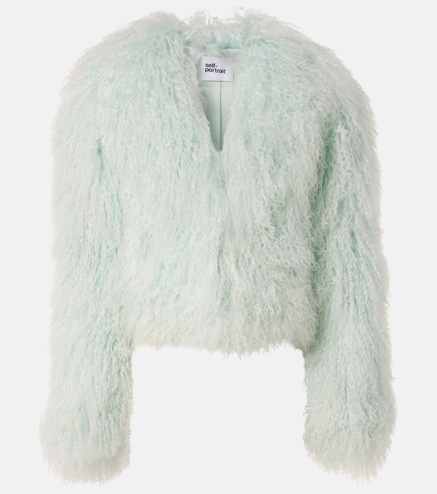 Material: 100% shearling. Care instructions: dry clean. Made in China. Designer color name: Green. Lining: 100% polyester. Comes with garment bag. Closure: hook fastening. Shop the latest Self-Portrait Shearling Jackets.