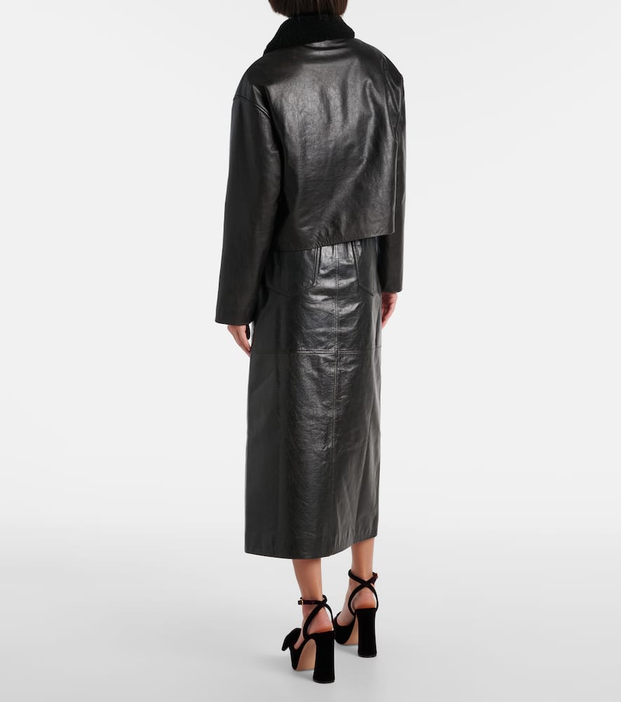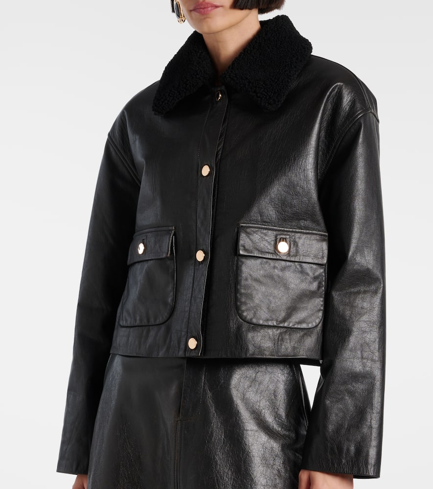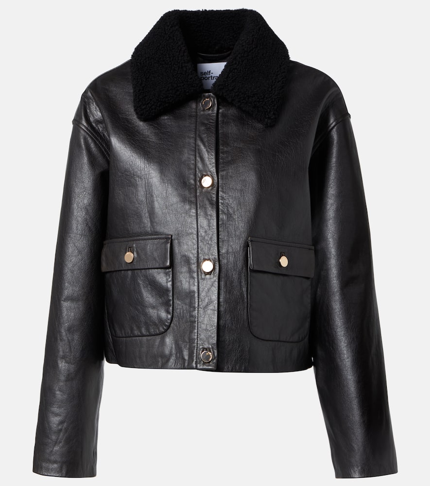 Material: 100% leather. Care instructions: dry clean. Made in China. Designer color name: Black. Closure: snap-buttoned front. Pockets: snap-buttoned pockets. Shop the latest Self-Portrait Leather Jackets.