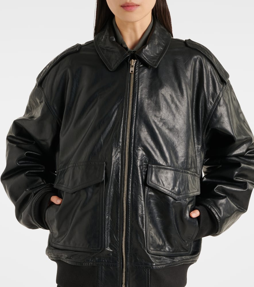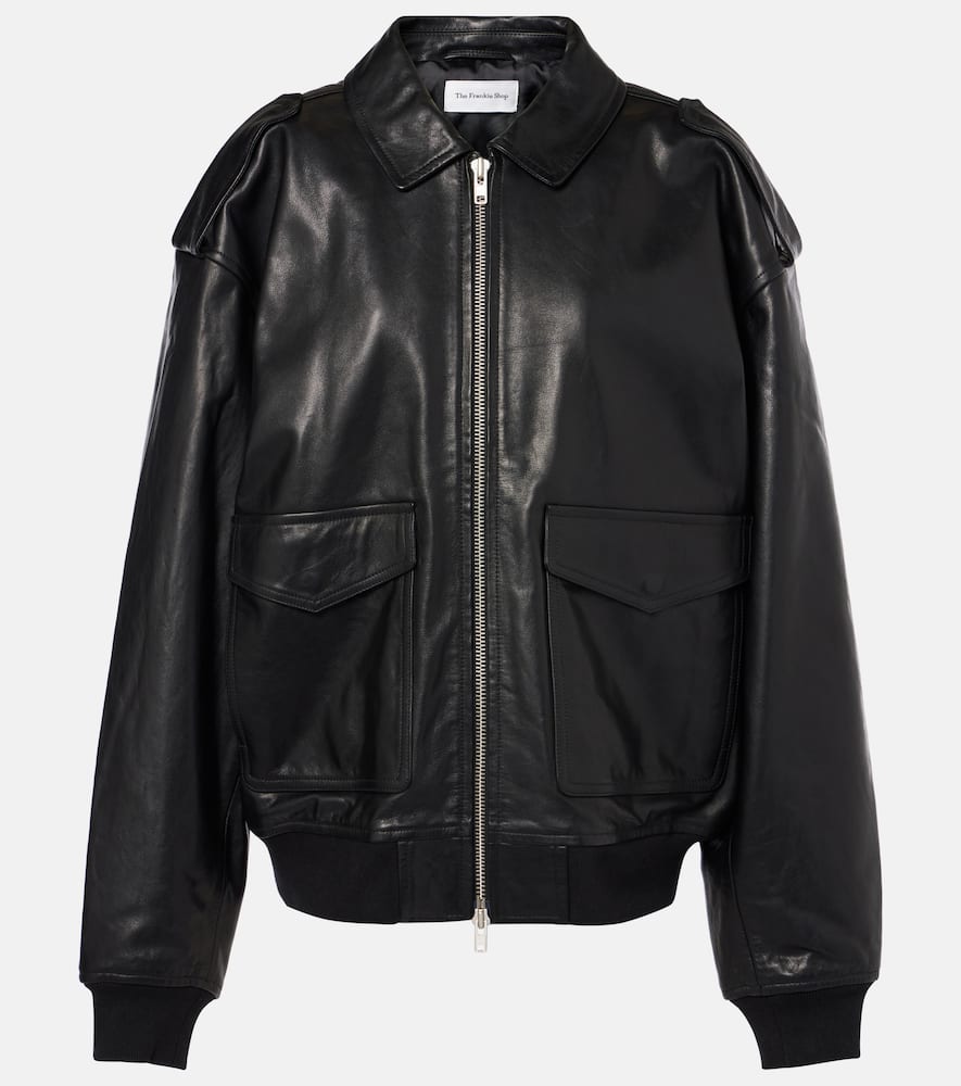 Material: 100% leather. Care instructions: specialist clean. Made in India. Designer color name: Black. Pockets: flap pockets, snap-buttoned pockets. Closure: zipped front. Lining: 100% polyester. Shop the latest The Frankie Shop Leather Jackets.