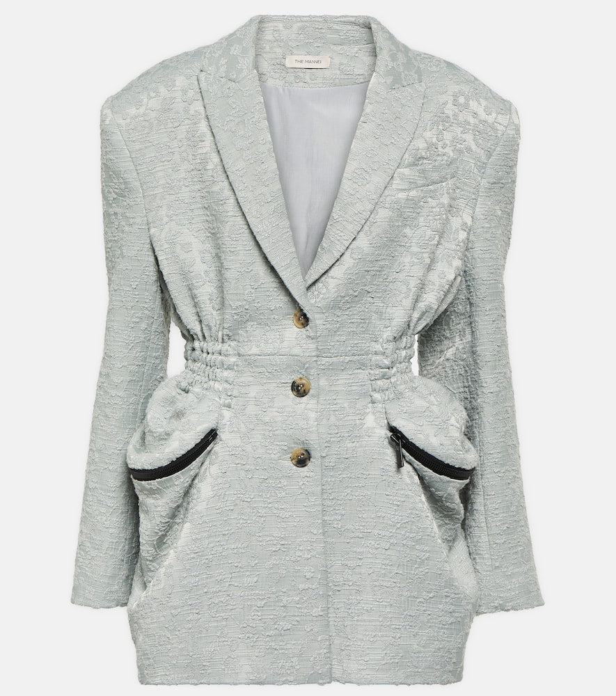Material: 74% cotton, 24% polyamide, 2% elastane. Care instructions: dry clean. Made in Poland. Designer color name: Taupe. Lining: 55% viscose, 35% polyamide, 10% silk. Pockets: zipped pockets, breast pocket. Closure: buttoned front. Shop the latest The Mannei Blazers.