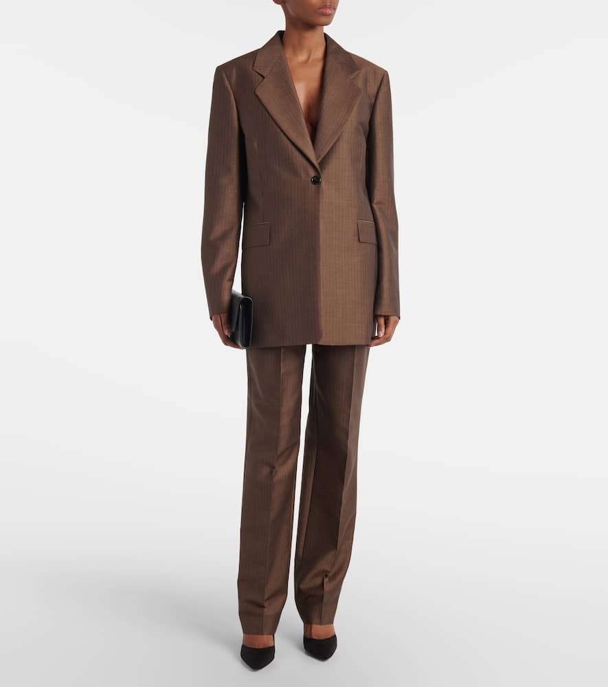 Material: 60% mohair, 40% wool. Care instructions: dry clean. Made in Italy. Designer color name: Dark Beige. Closure: single-breasted (one button). Lining: 100% silk. Pockets: flap pockets. Shop the latest The Row Blazers.
