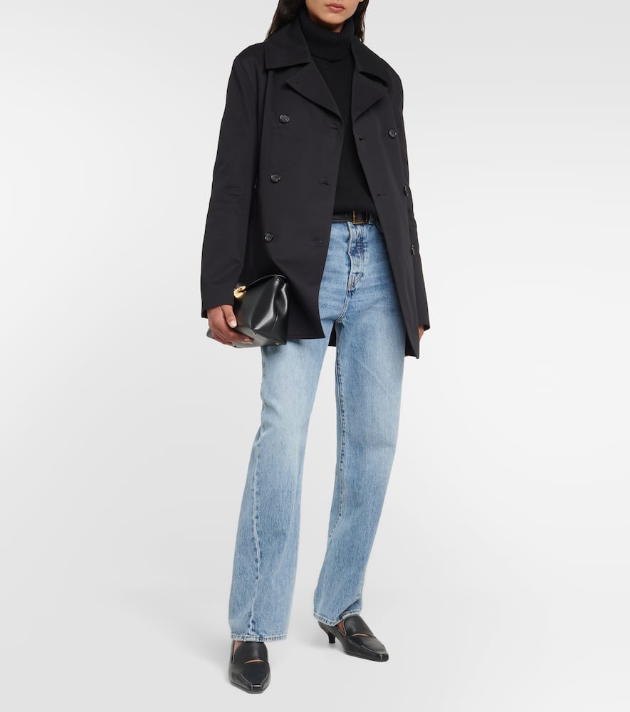 Material: 100% cotton (organic). Pockets: side slit pockets. Closure: double-breasted buttoned front. Designer color name: Black. Care instructions: dry clean. Made in Romania. Shop the latest Toteme Blazers.