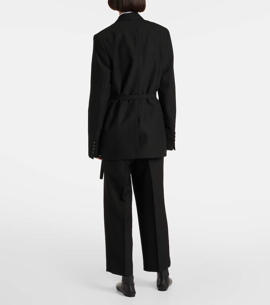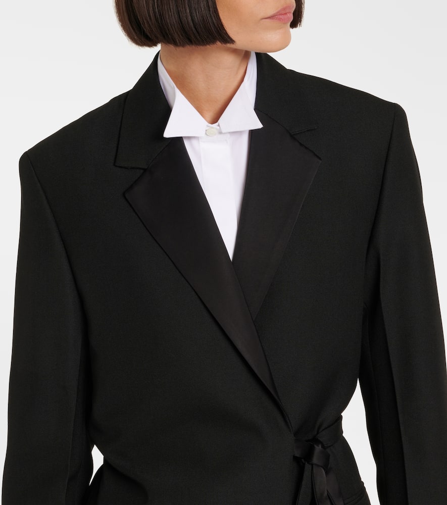 Material: 55% polyester, 45% wool. Care instructions: dry clean. Made in Romania. Designer color name: Black. Lining: 100% viscose. Pockets: slit pockets. Closure: self-ties. Shop the latest Toteme Blazers.