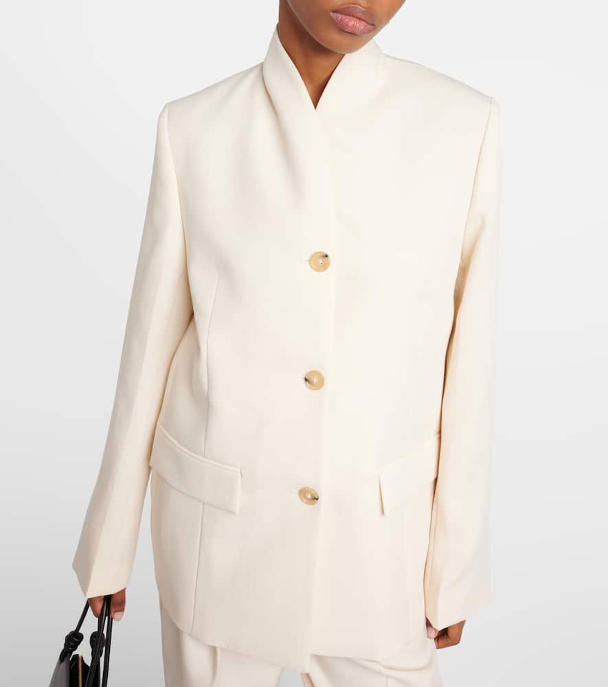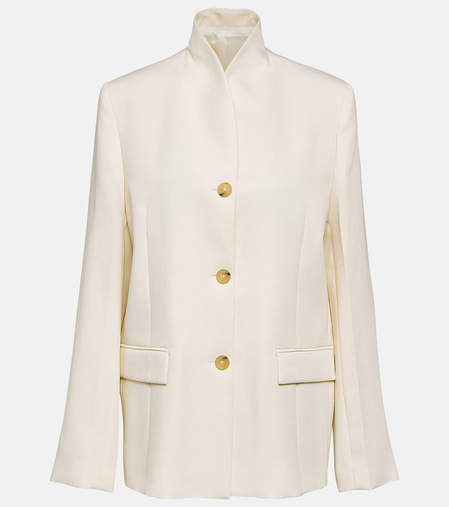 Material: 78% viscose, 22% polyester. Care instructions: dry clean. Made in Portugal. Designer color name: Snow. Lining: 100% viscose. Closure: buttoned front. Pockets: flap pockets. Shop the latest Toteme Blazers.
