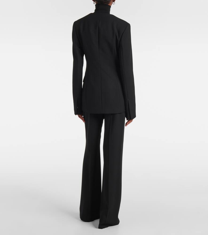 Material: 60% wool, 40% polyamide. Care instructions: dry clean. Made in Romania. Designer color name: Black. Lining: 100% viscose. Closure: concealed buttoned front. Pockets: flap pockets, internal pockets. Length: long (thigh-length). Sleeves: long-sleeved. Shop the latest Toteme Blazers.