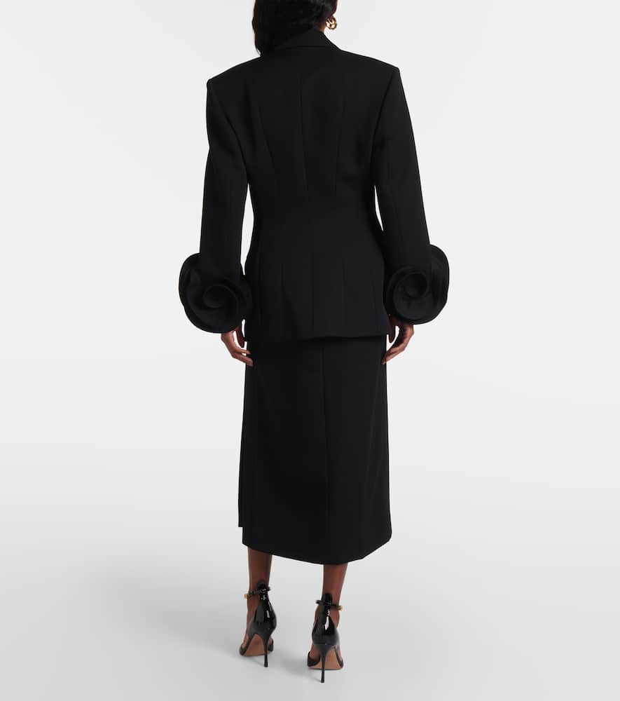 Material: 100% virgin wool. Care instructions: dry clean. Made in Italy. Designer color name: Nero. Material II: 58% wool, 42% viscose. Lining: 100% cupro. Closure: double-breasted (four buttons). Comes with garment bag. Shop the latest Valentino Blazers.