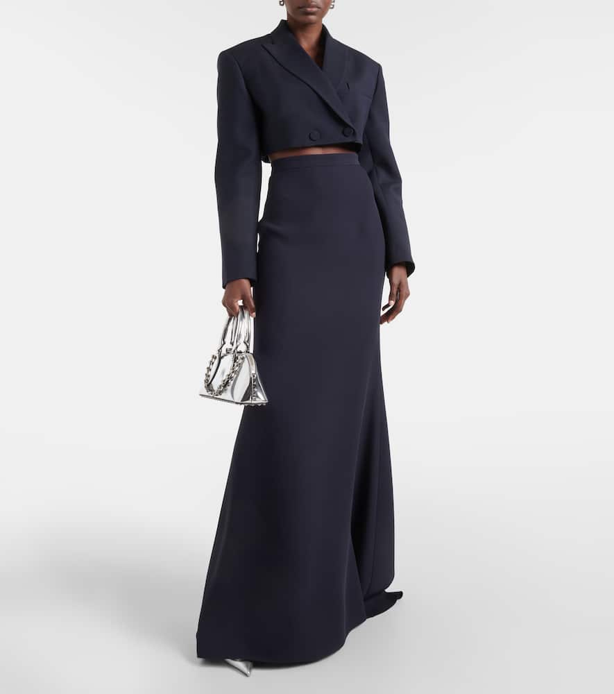 Material: 65% wool, 35% silk. Care instructions: do not wash. Made in Italy. Designer color name: Navy. Closure: double-breasted. Pockets: breast pocket. Material II: 58% wool, 42% viscose. Lining: 100% cupro. Shop the latest Valentino Blazers.