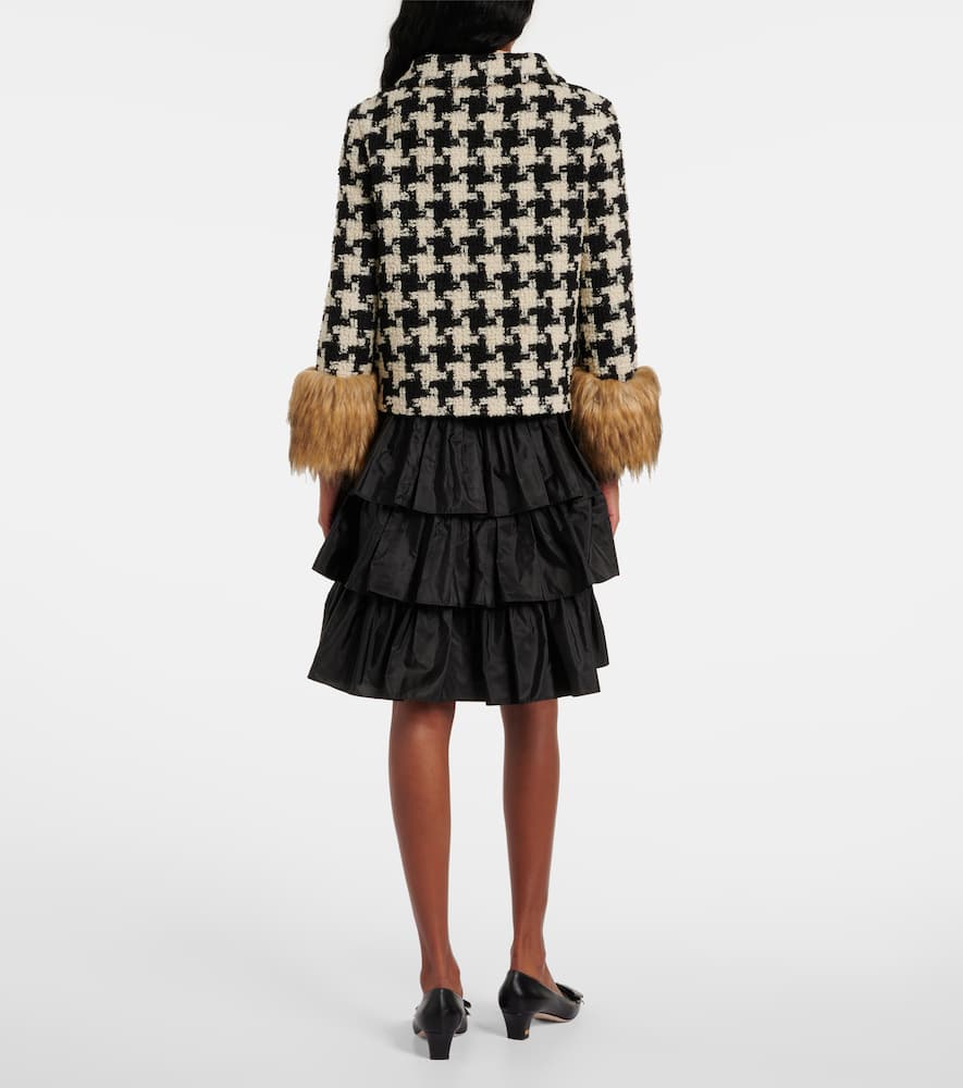 Material: 92% wool, 8% polyamide. Care instructions: dry clean. Made in Italy. Designer color name: Avorio/Nero. Material II: 87% acrylic, 13% polyester. Lining: 74% acetate, 26% silk. Fully lined. Filling: 100% polyester. Trim: 100% polyester. Closure: snap-buttoned front. Pockets: slit pockets. Comes with garment bag. Houndstooth. Shop the latest Valentino Tweed Jackets.