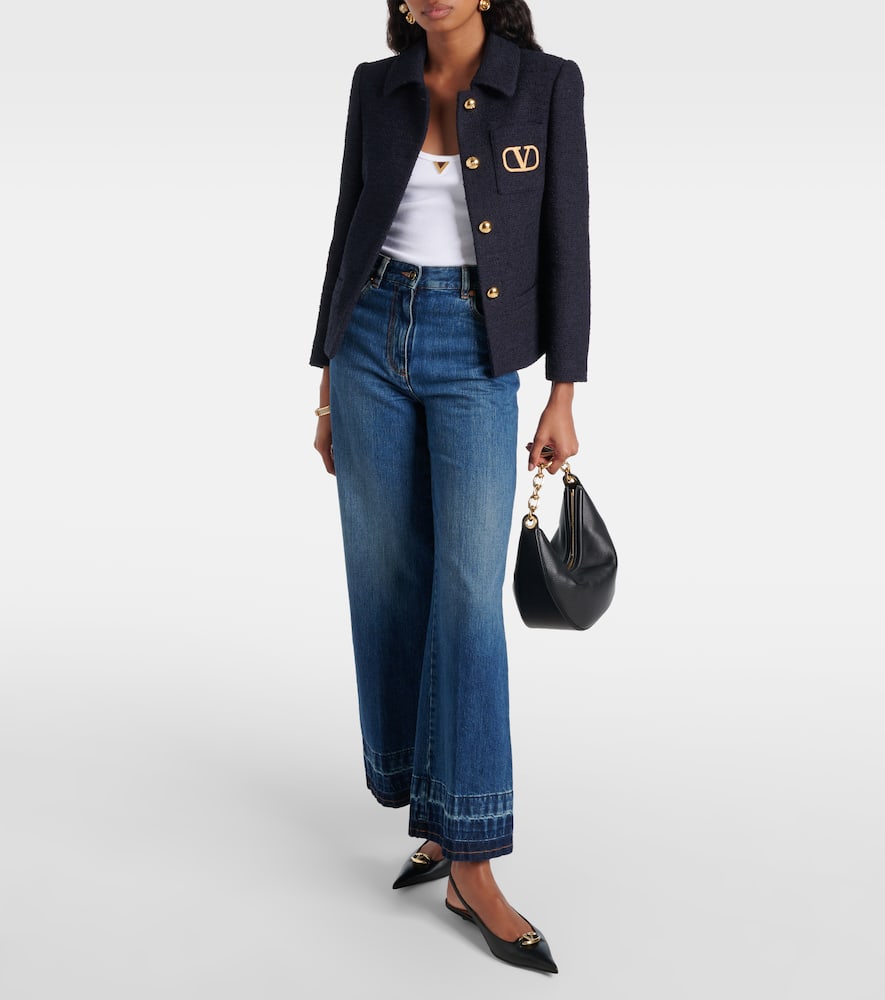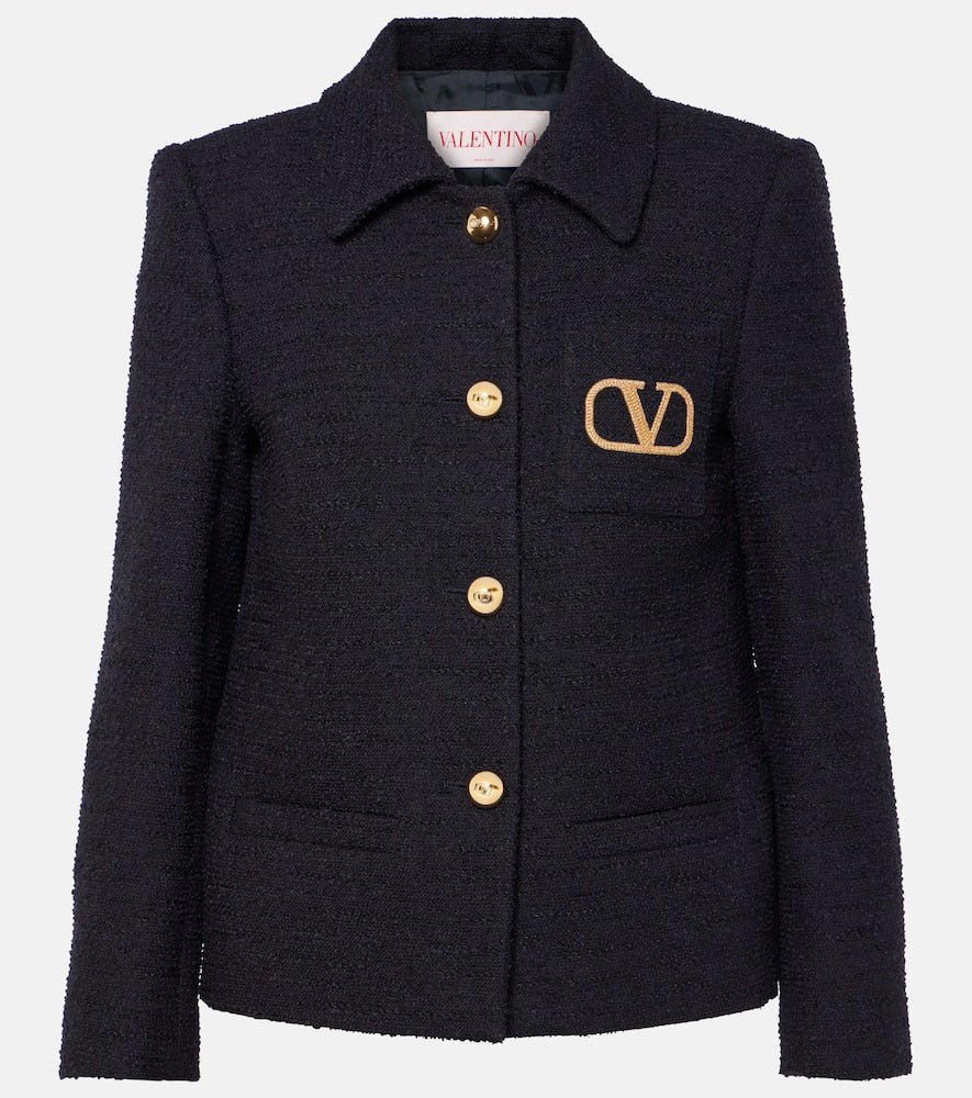 Material: 31% cotton, 31% viscose, 18% wool, 11% llama wool, 9% polyamide. Care instructions: dry clean. Made in Italy. Designer color name: Navy. Lining: 100% cupro. Closure: buttoned front. Pockets: welt pockets, breast pocket. Shop the latest Valentino Tweed Jackets.