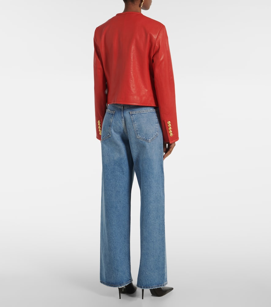 Material: 100% leather. Care instructions: dry clean. Made in China. Designer color name: Poppy. Lining: 100% cupro. Closure: buttoned front. Pockets: patch pockets. Shop the latest Veronica Beard Leather Jackets.