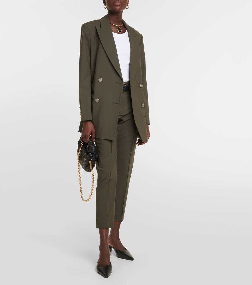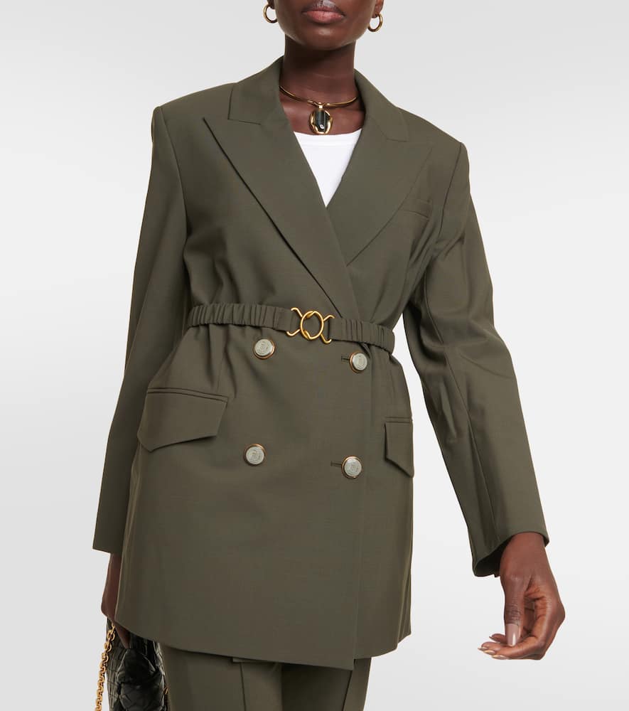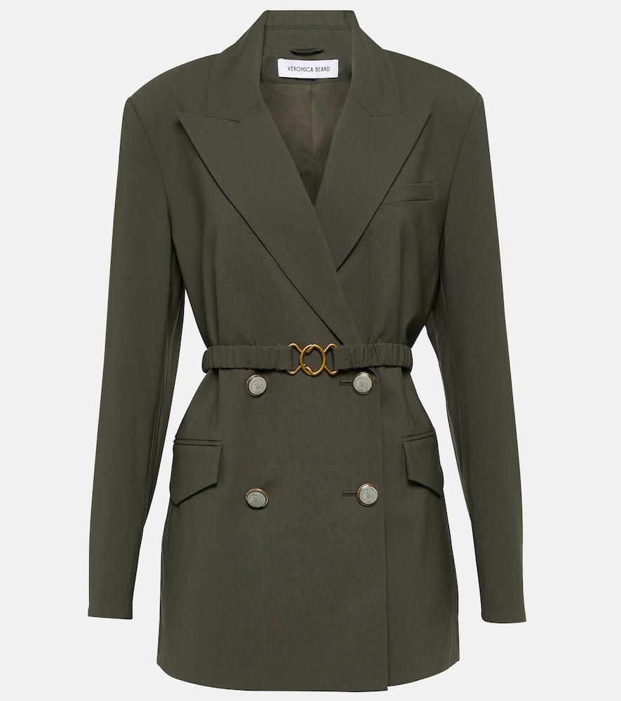 Material: 66% wool, 30% polyamide, 4% elastane. Care instructions: dry clean. Made in Vietnam. Designer color name: Loden. Lining: 100% polyester. Closure: double-breasted buttoned front. Pockets: flap pockets. Shop the latest Veronica Beard Blazers.