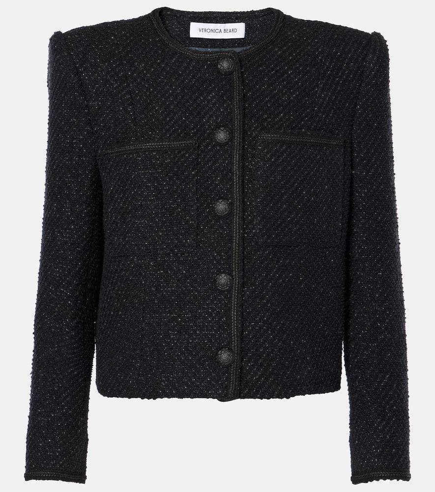 Material: 76% cotton, 24% polyester. Care instructions: dry clean. Made in China. Designer color name: Black. Closure: buttoned front. Pockets: angled chest pockets. Shop the latest Veronica Beard Tweed Jackets.