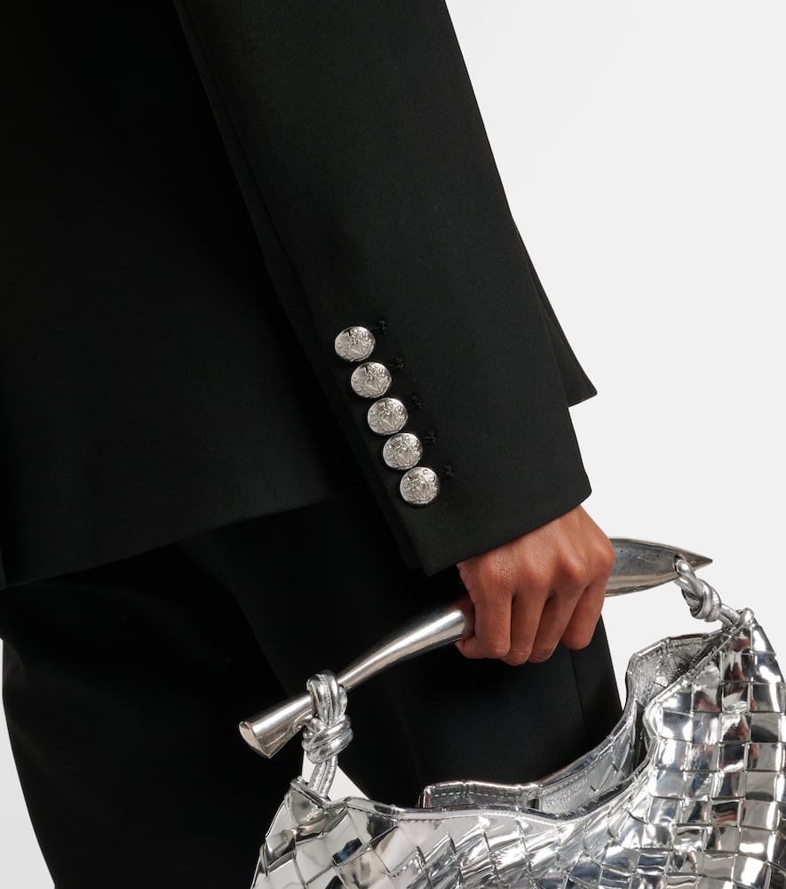 Material: 63% polyester, 27% viscose, 7% cotton, 3% elastane. Lining: 52% cotton, 48% polyester, fully lined. Designer color name: Black. Lining II: 100% polyester. Pockets: breast pocket, flap pockets. Closure: double-breasted buttoned front. Care instructions: dry clean. Buttoned cuffs. Shoulder pads. Shop the latest Veronica Beard Blazers.