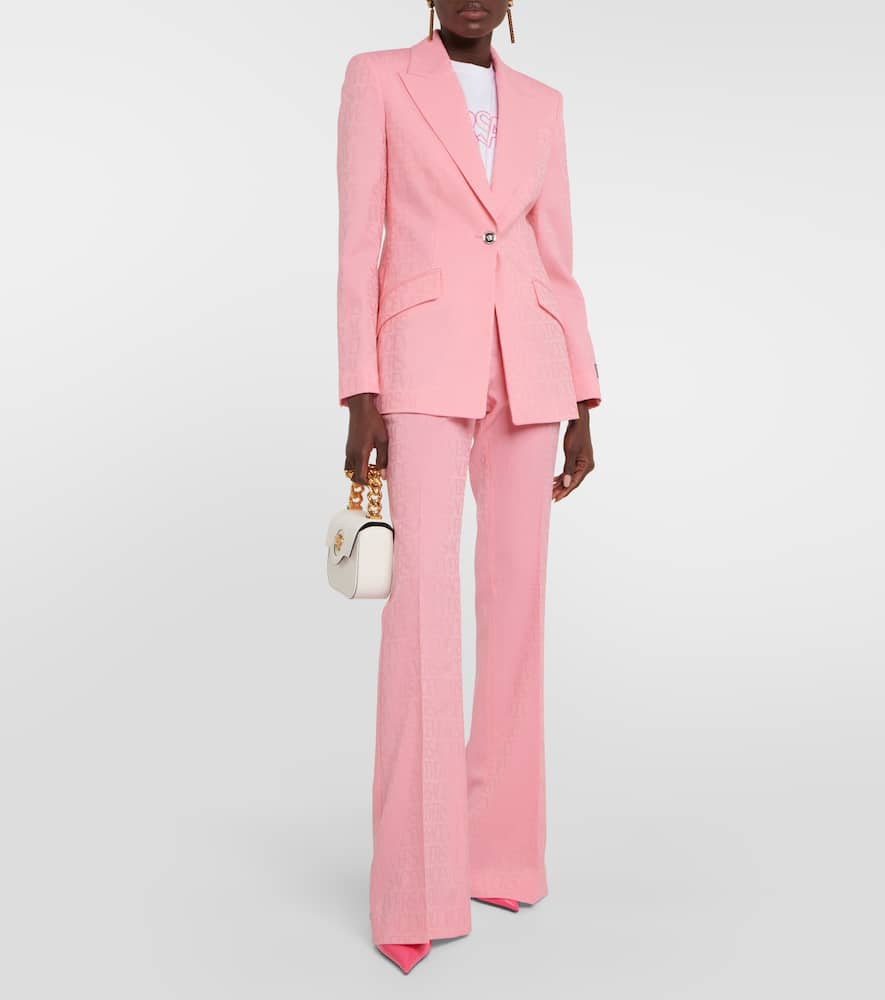 Lining: fully lined, 100% cupro. Made in Italy. Care instructions: dry clean. Designer color name: Pastel Pink. Pockets: flap pockets. Closure: buttoned front. Material: 100% virgin wool. Shop the latest Versace Blazers.