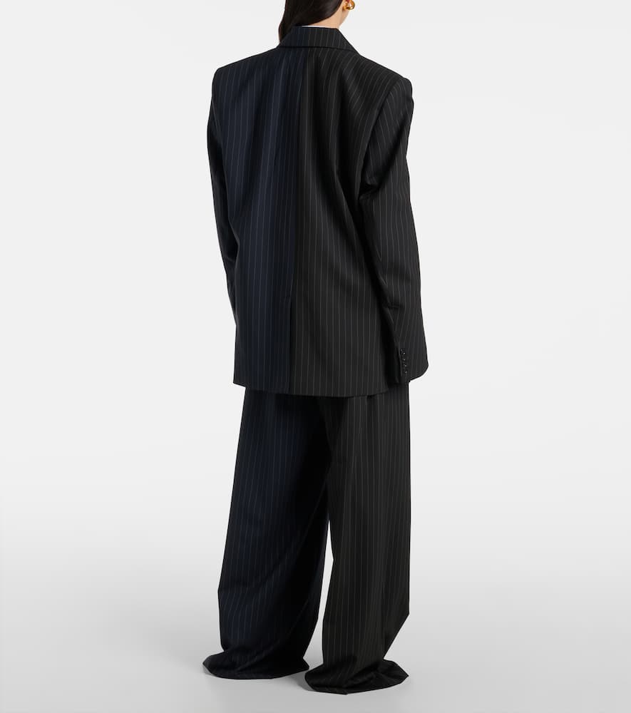 Material: 98% wool, 2% elastane. Care instructions: do not wash. Made in Italy. Designer color name: Black/ Navy Pinstripe. Closure: single-breasted (two buttons). Pinstriped. Pockets: flap pockets. Shop the latest Vetements Blazers.