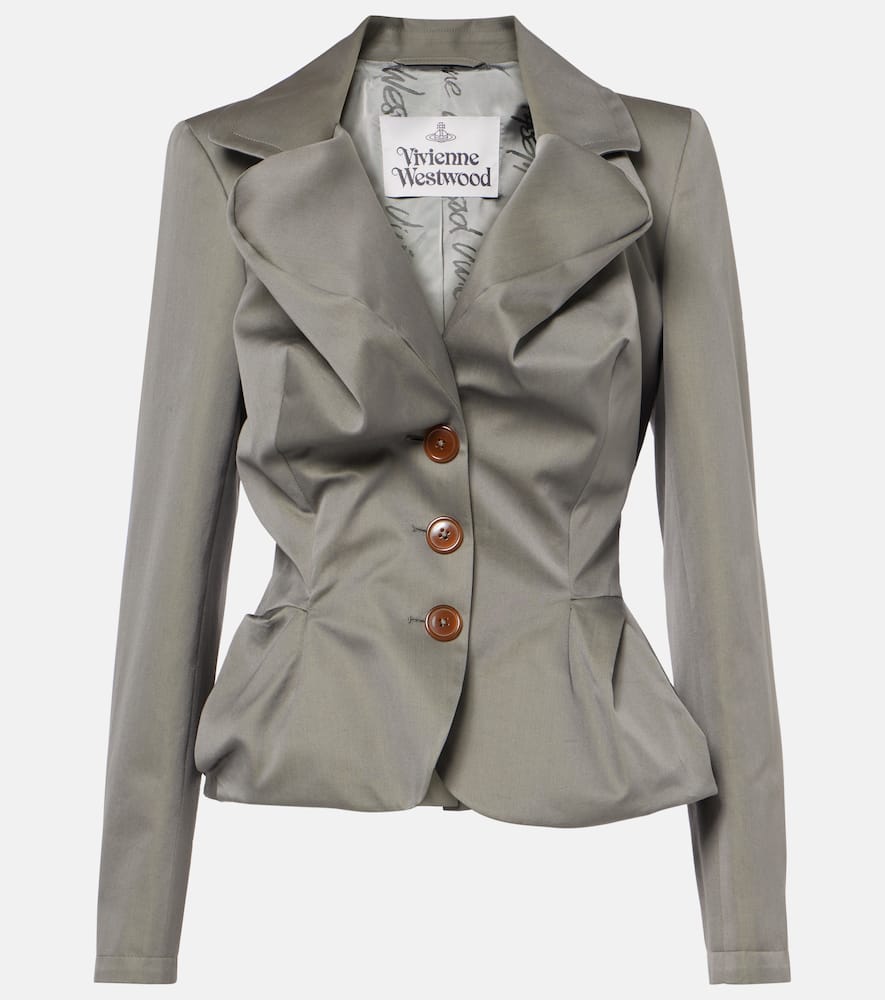 Material: 100% cotton. Care instructions: dry clean. Made in Italy. Designer color name: Grey. Closure: buttoned front. Lining: 100% cupro. Shop the latest Vivienne Westwood Blazers.