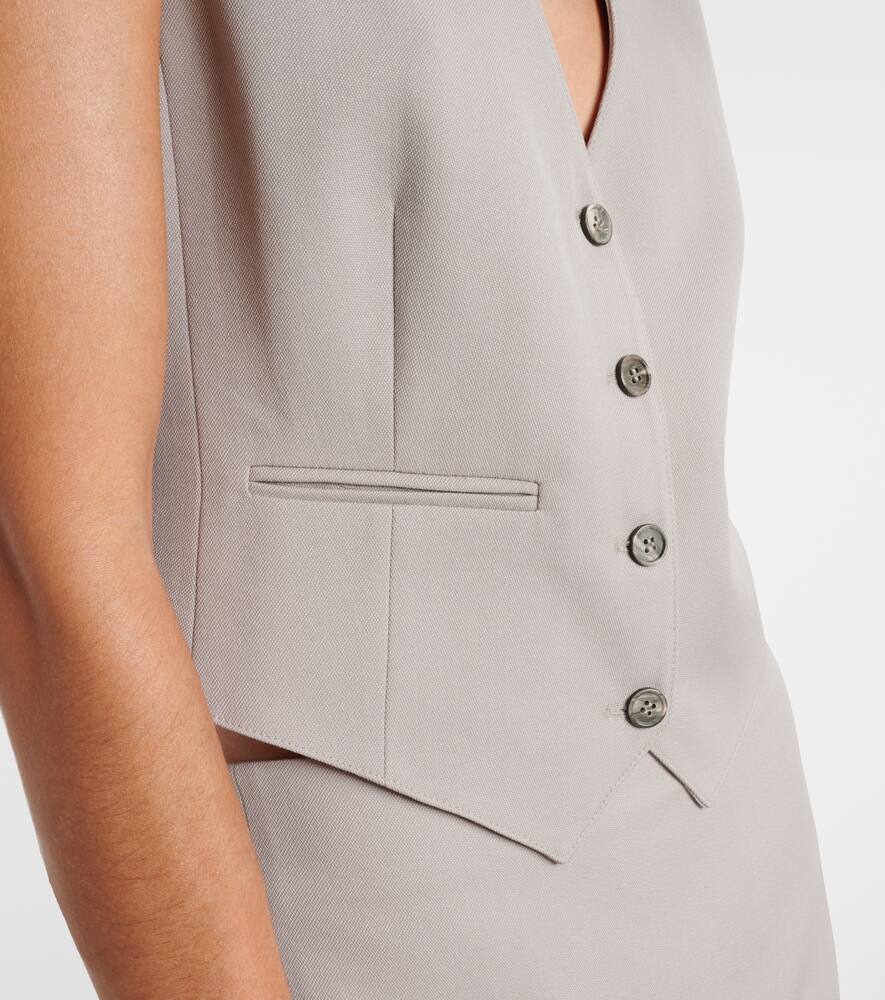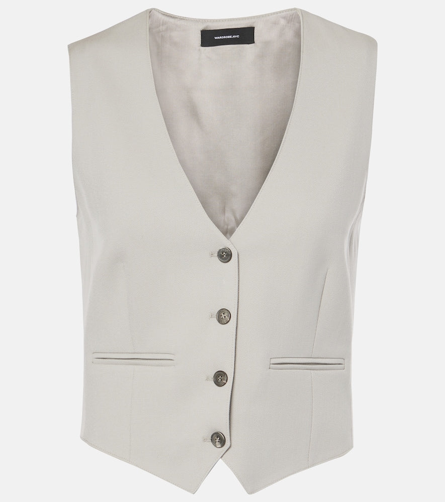 Material: 100% virgin wool. Care instructions: dry clean. Made in Slovakia. Designer color name: Cement. Lining: 100% viscose. Closure: buttoned front. Pockets: faux pockets. Shop the latest Wardrobe.NYC Vests & Gilets.