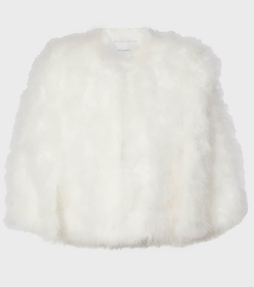 Material: 100% feathers. Care instructions: specialist clean. Made in France. Designer color name: Meringue. Lining: 100% silk. Pockets: side slit pockets. Contains non-textile parts of animal origin. Closure: hook fastening. Comes with garment bag. Shop the latest Yves Salomon Faux-Fur Jackets.