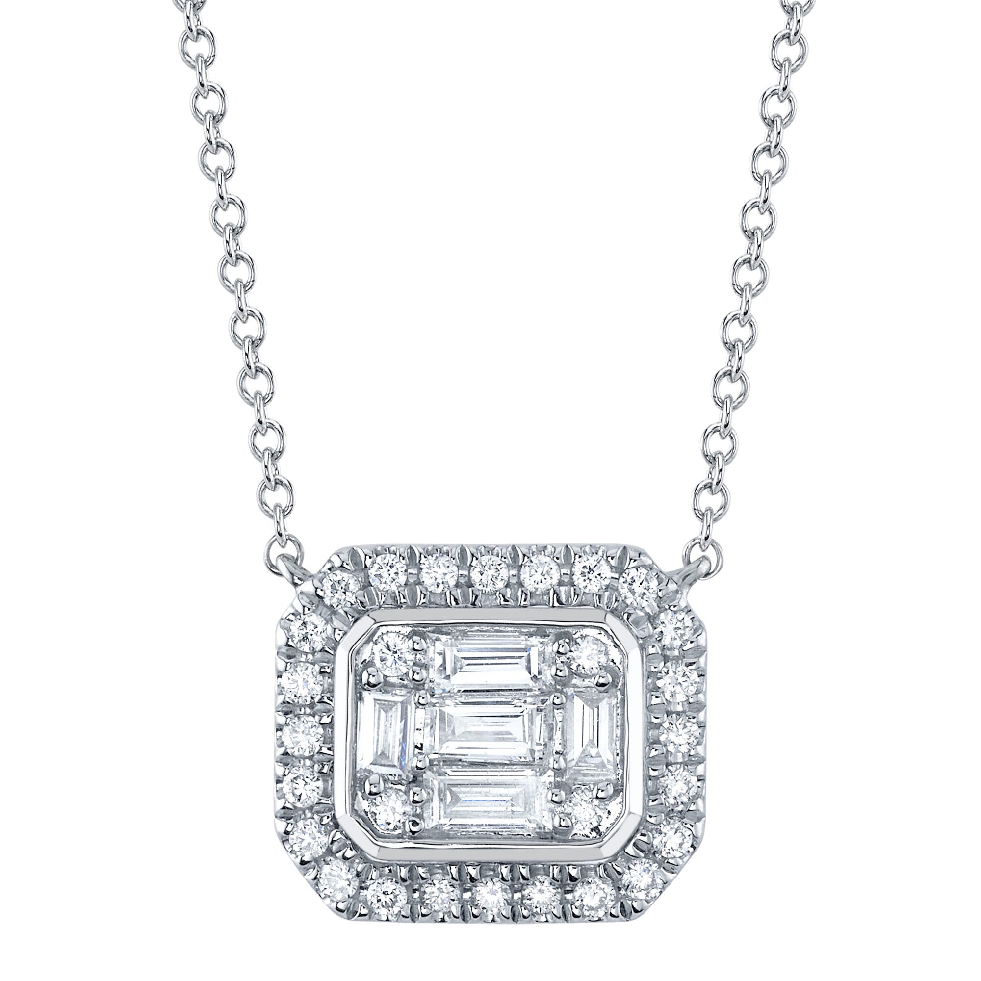 Shy Creation 3/8ctw Baguette and Round Diamond White Gold Pendant Necklace