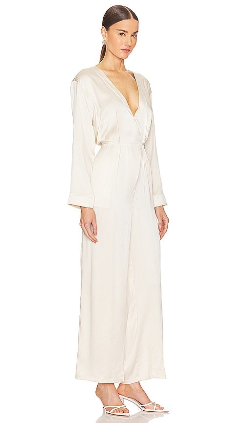 LUNYA Silk Long Sleeve Jumpsuit in White - Combinaison à manches longues en soie LUNYA en blanc - LUNYA 白色真丝长袖连身裤 - LUNYA Seiden-Langarm-Jumpsuit in Weiß - LUNYA 실크 긴팔 점프수트화이트 색상 - Tuta a maniche lunghe in seta LUNYA in bianco