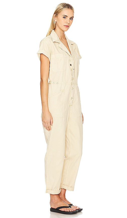 PISTOLA Grover Jumpsuit in Beige. - size L (also in M, S, XL, XS) PISTOLA Grover Jumpsuit in Beige. - size L (also in M, S, XL, XS) 100% cotton. Made in China. Machine wash. Partial front snap button closure. Padded shoulders Smocked waistband. Side slant and back slip pockets. Twill fabric. PSTL-WC84. P00071950SL. PISTOLA is a premium denim label offering contemporary ready-to-wear collections designed with the modern woman's independent spirit in mind. Founded in 2013 by industry veteran Grace Na, Pistola skillfully blends expert cuts with a streetwise sensibility. Designed in California, PISTOLA garment is meticulously crafted, elevating everyday material with precise fits and utilitarian style edge, to give women thoughtfully designed classics as wardrobe essentials to live in. PISTOLA stands by the guiding principle that high-quality denim is for everyone, forever. Shop the latest in fashion from PISTOLA
