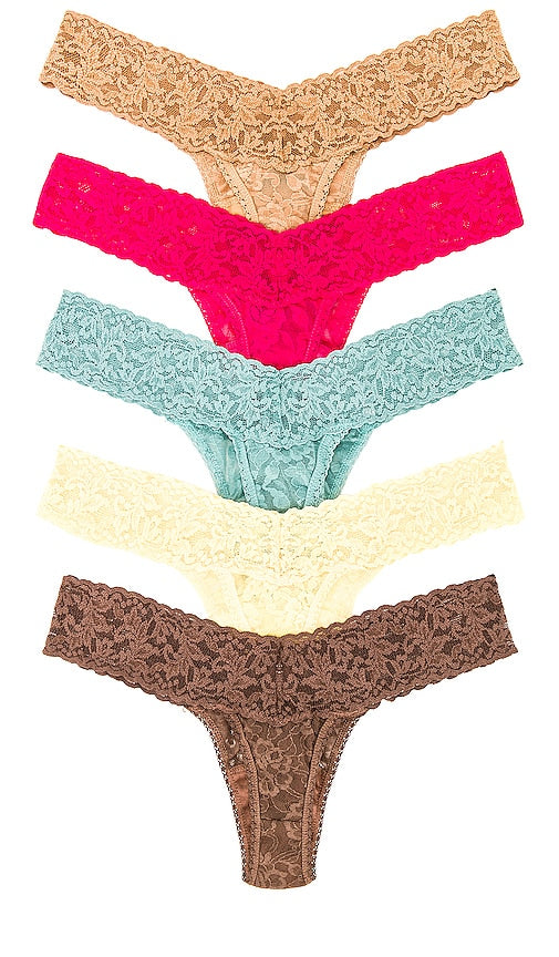 Hanky Panky Five Low Rise Thongs in Fuchsia. Hanky Panky Five Low Rise Thongs in Fuchsia. Self: 100% nylon Trim: 90% nylon 10% spandex Lining: 100% cotton. Made in USA. Hand wash. Lace fabric. Set of 5. HANK-WI698. 49115VPK. As fresh and flirtatious as the name suggests, Hanky Panky has been an internationally known creator of women's lingerie, sleepwear, and sportswear for over 25 years. Founded by Gale Epstein and Lida Orzeck, Hanky Panky has emerged as one of the fashion industry's innovators in design. From the original handkerchief camisole & G-string of the 70's, to the padded shoulder undershirt of the 80's, to the lacy tops & sexy thongs of the 90's, Hanky Panky continues its dedication to comfort, fit, & quality. Shop the latest in fashion from Hanky Panky