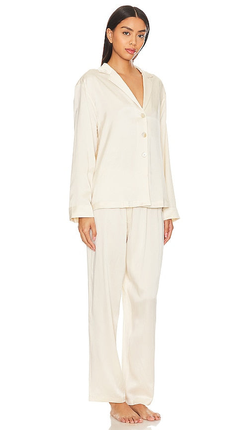 LUNYA Silk Long Sleeve Pajama Pant Set in Ivory
