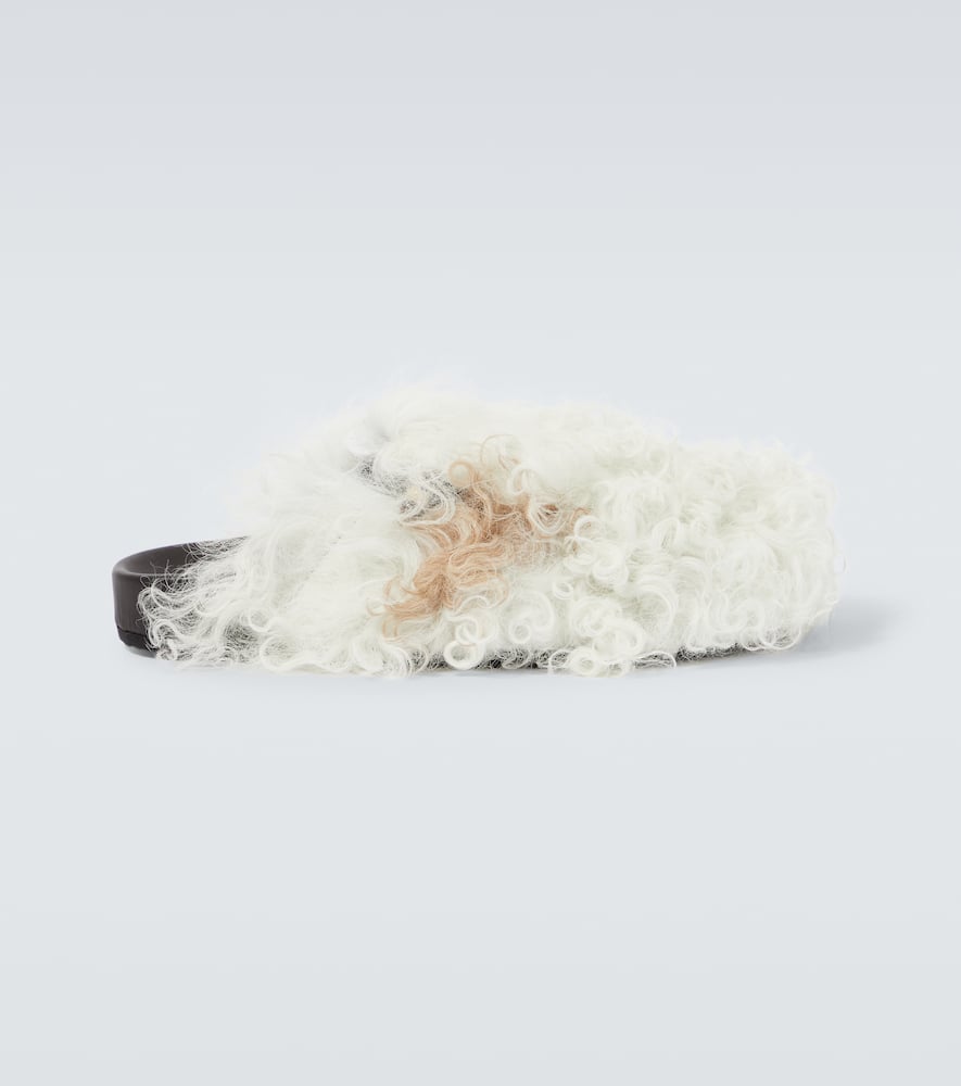 Upper: shearling. Lining: leather. Sole: leather insole, rubber sole. Toe shape: round toe. Made in Italy. Includes: shoe box, dust bag. Designer color name: White White. Shop Alanui Slippers for men and other designer shoes now.