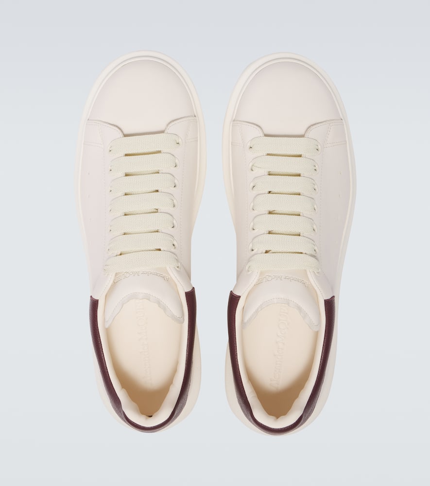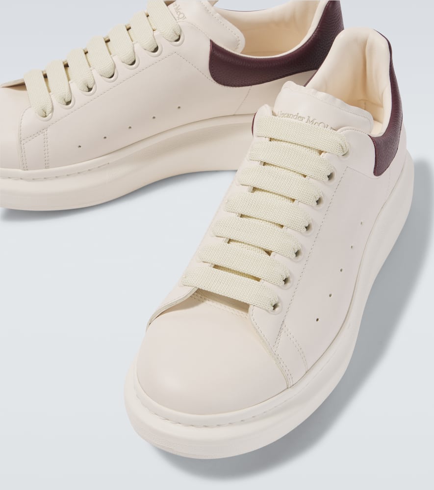 Upper: leather. Lining: leather. Sole: leather insole, rubber sole. Toe shape: round toe. Made in Italy. Includes: shoe box, dust bag. Designer color name: Off White/ Bordeaux. Closure: quick-lacing system. Shop Alexander McQueen Low-Top Sneakers for men and other designer shoes now.