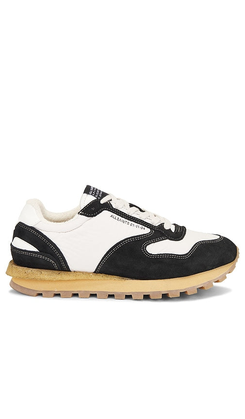 Suede, leather, and nylon upper with rubber tread sole. Made in Portugal. Lace-up front. ALLSAINTS logo patch at tongue. Padded low-cut collar. ALLR-MZ53. MF717X-WHITE/BLACK. Founded in East London in 1994, AllSaints breaks through the noise to offer something different. Cult leather jackets and signature biker boots - it's what they do. Prints you weren't expecting, and accessories you'll keep coming back for. It's about innovation, about turning your back on the trends and making your own rules, a uniform without uniformity. AllSaints is an attitude, wear it your way.