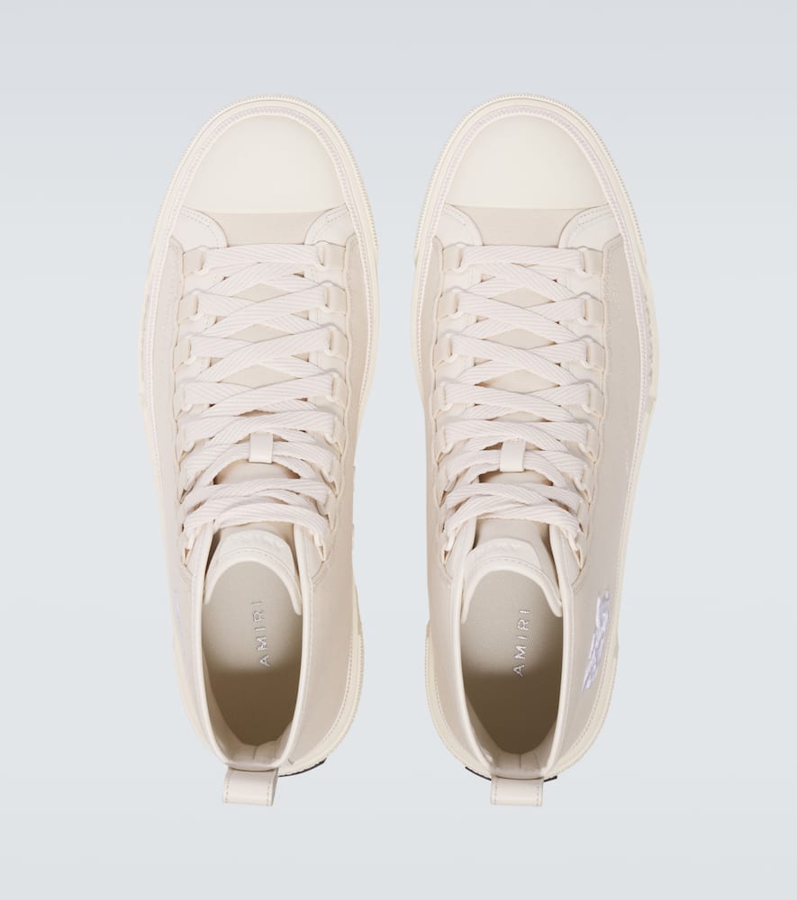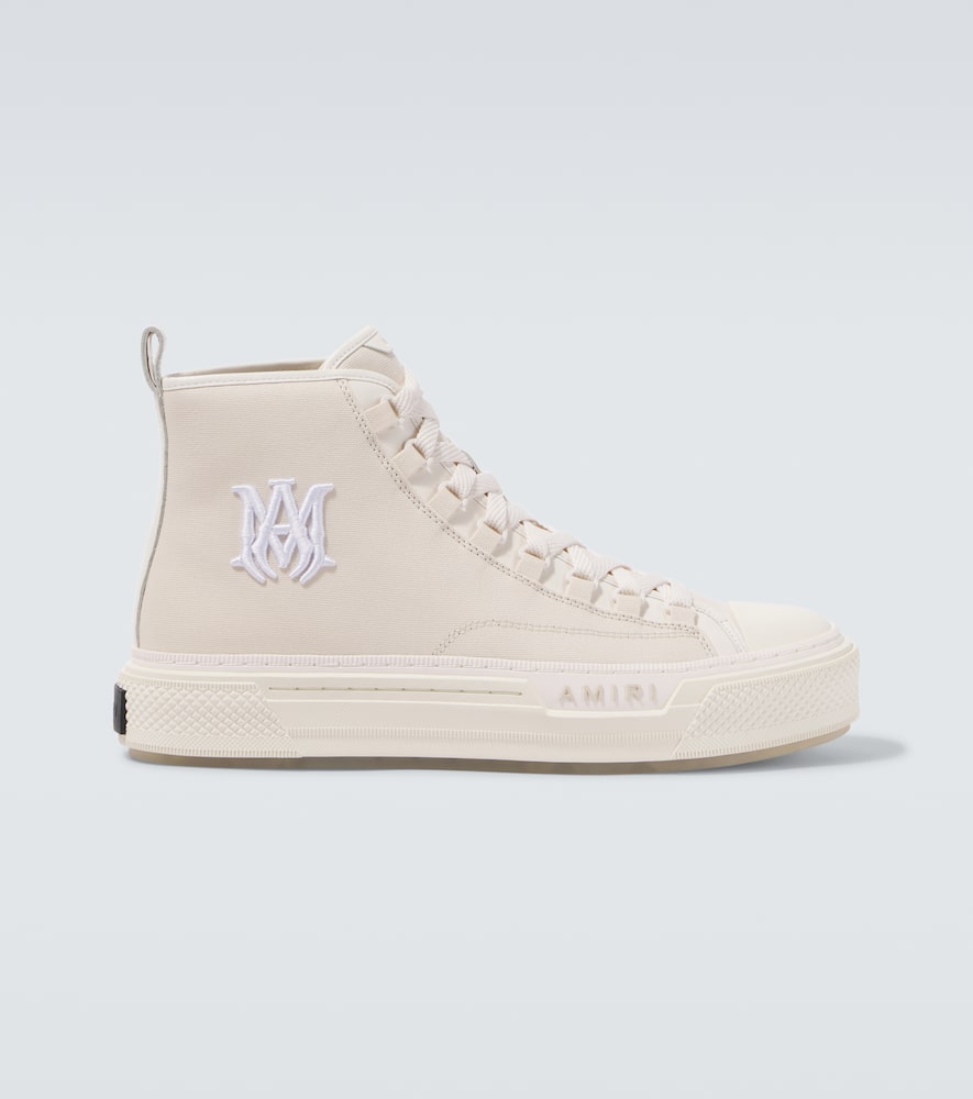 Upper: fabric. Lining: leather. Sole: fabric insole, rubber sole. Toe shape: almond toe. Made in Vietnam. Includes: shoe box, dust bag. Designer color name: Alabaster. Trim: leather. Closure: lace-up. Shop Amiri Designer Sneakers for men and other designer shoes now.