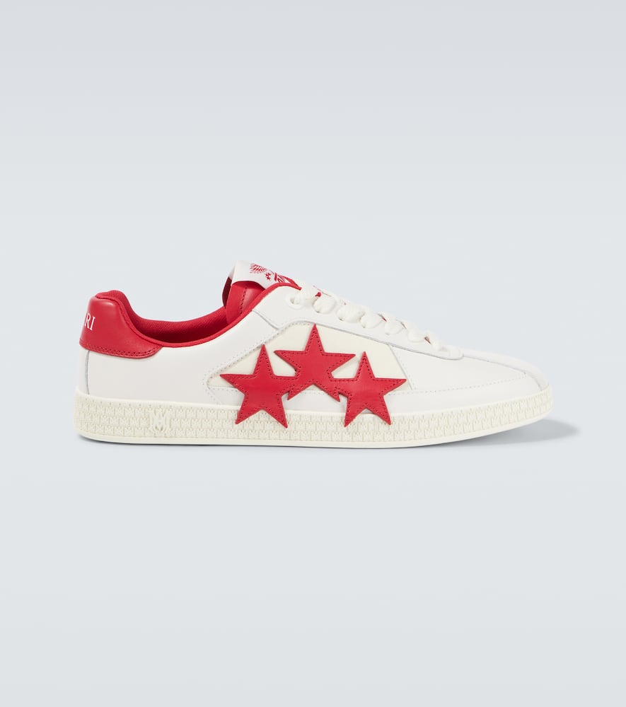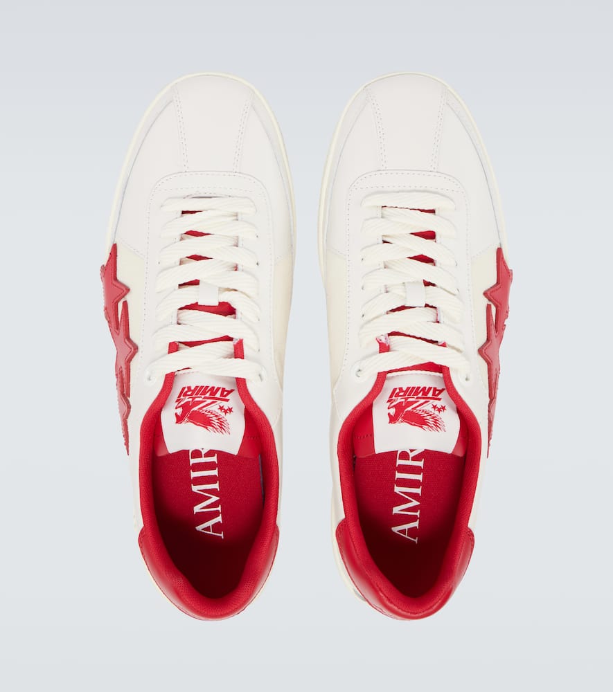 Upper: leather. Lining: fabric. Sole: fabric insole, rubber sole. Toe shape: almond toe. Made in China. Includes: shoe box, dust bag. Designer color name: Varsity Red. Closure: lace-up. Shop Amiri Low-Top Sneakers for men and other designer shoes now.