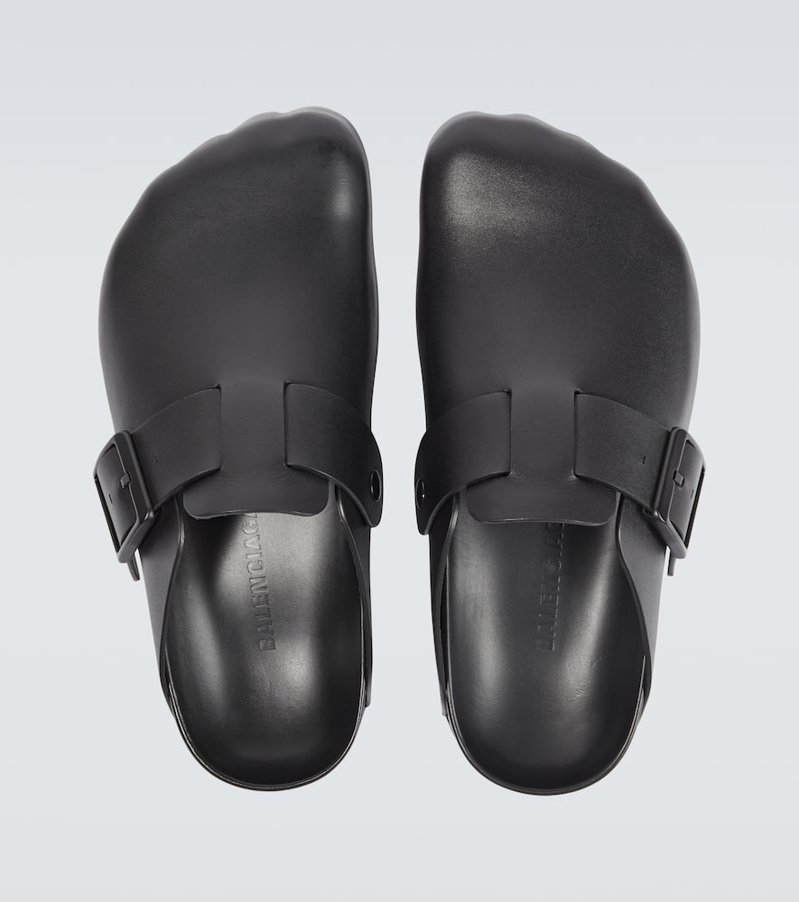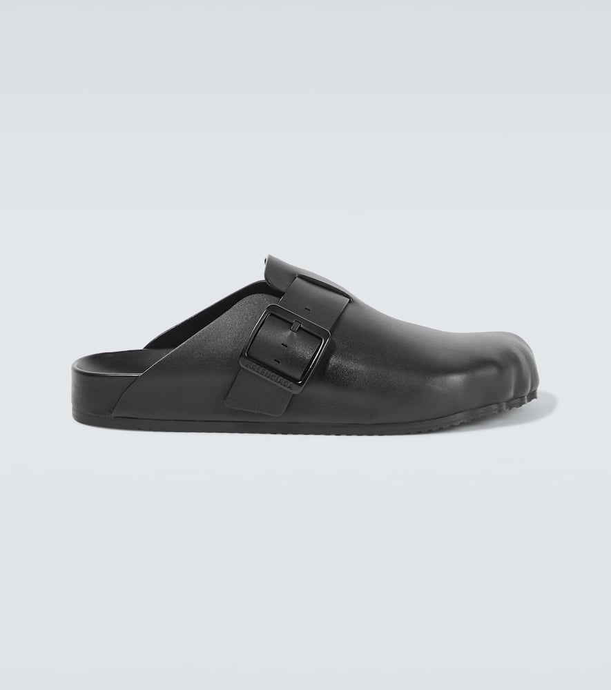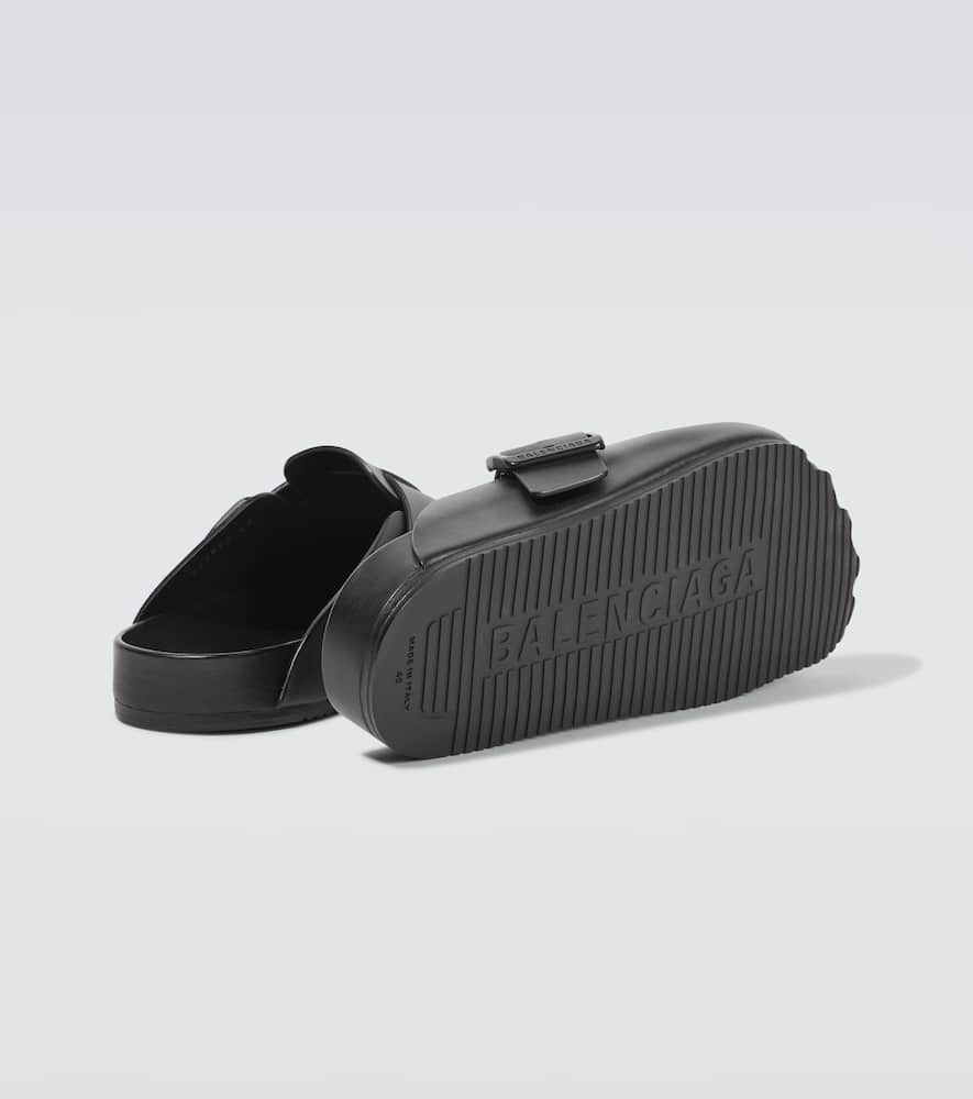 Upper: calf leather. Lining: leather. Sole: leather insole, rubber sole. Toe shape: five finger shape. Made in Italy. Includes: shoe box, dust bags. Designer color name: Black. Shop Balenciaga Slippers for men and other designer shoes now.