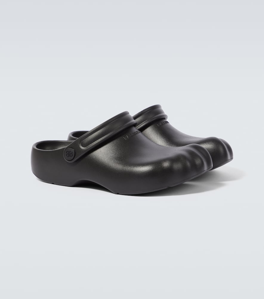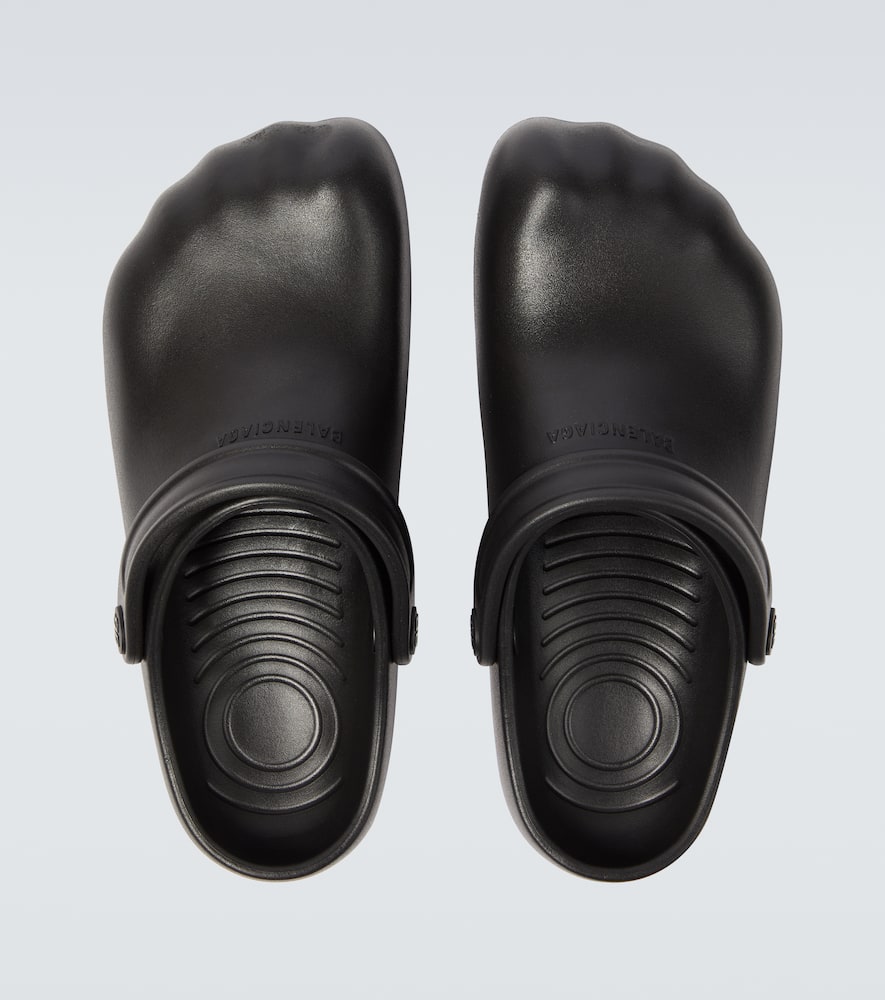 Upper: rubber. Lining: rubber. Sole: rubber insole and sole. Toe shape: five finger shape. Made in China. Includes: shoe box, dust bags. Designer color name: Black. Shop Balenciaga Slippers for men and other designer shoes now.