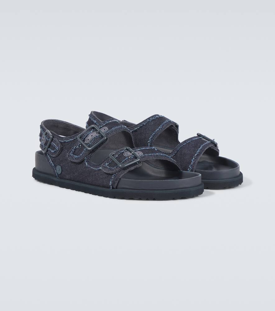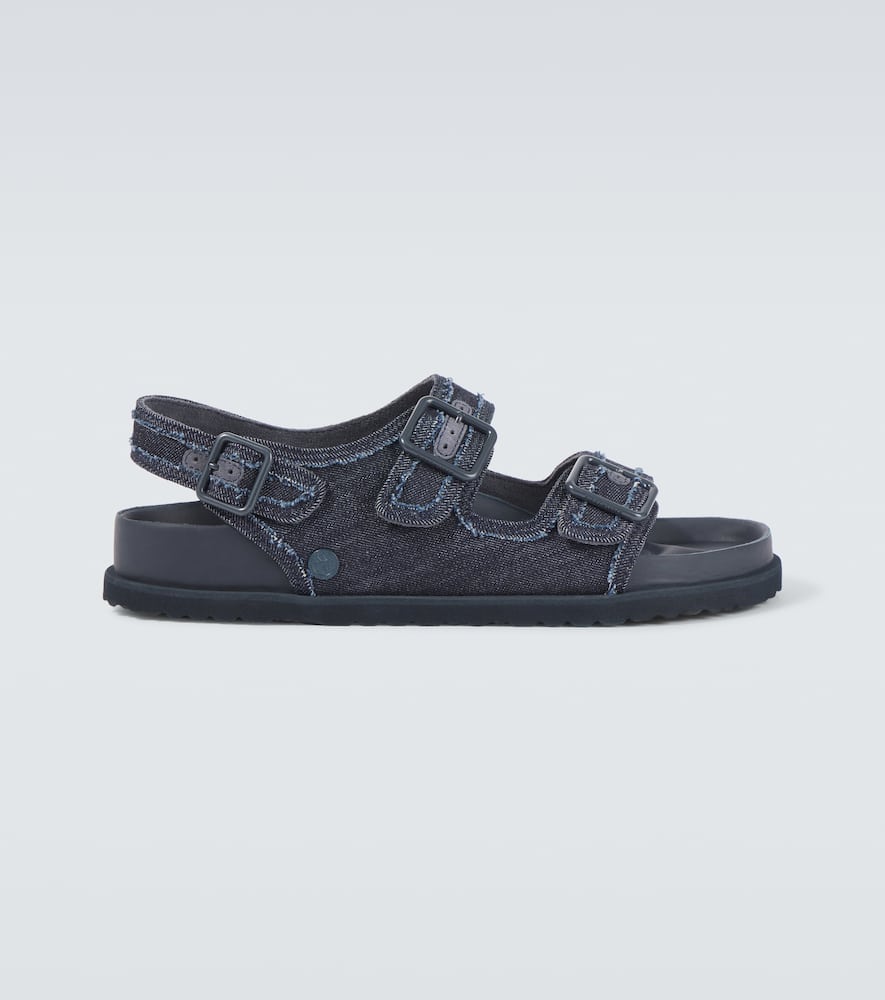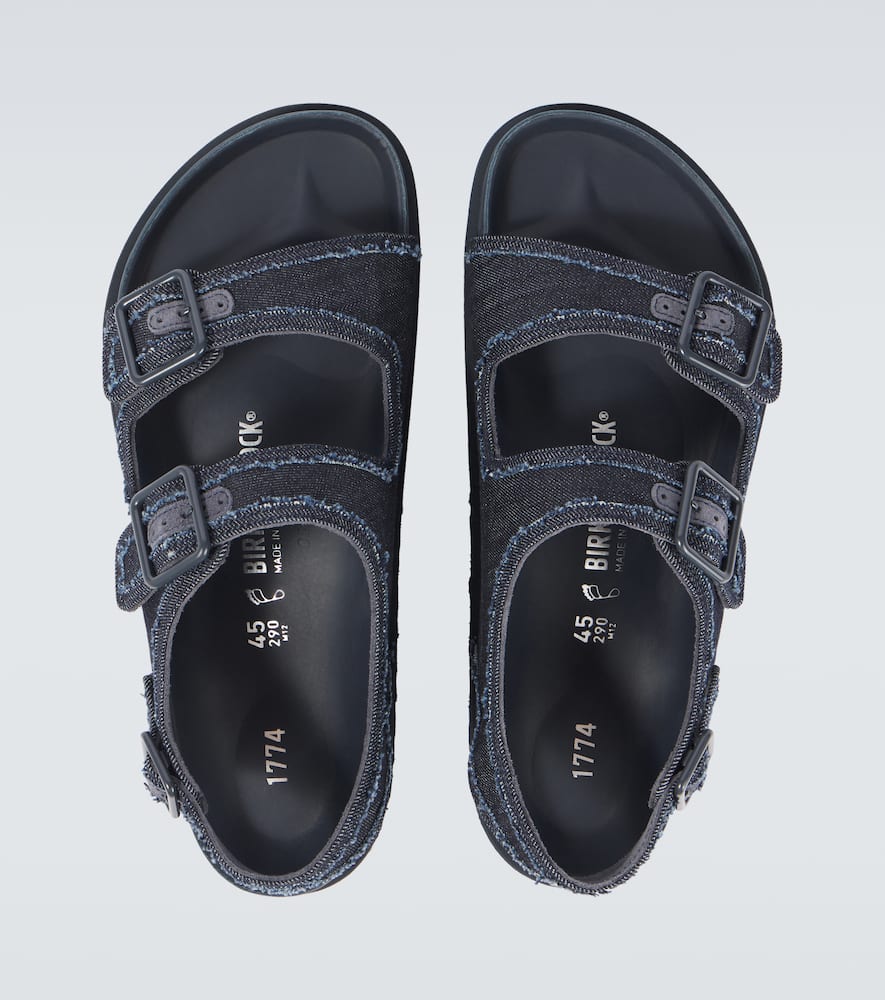 Upper: fabric, rubber. Lining: fabric. Sole: fabric insole, rubber sole. Toe shape: round open toe. Made in Germany. Includes: shoe box, dust bag. Designer color name: Dark Wash Denim. Shop Birkenstock 1774 Sandals & Slides for men and other designer shoes now.
