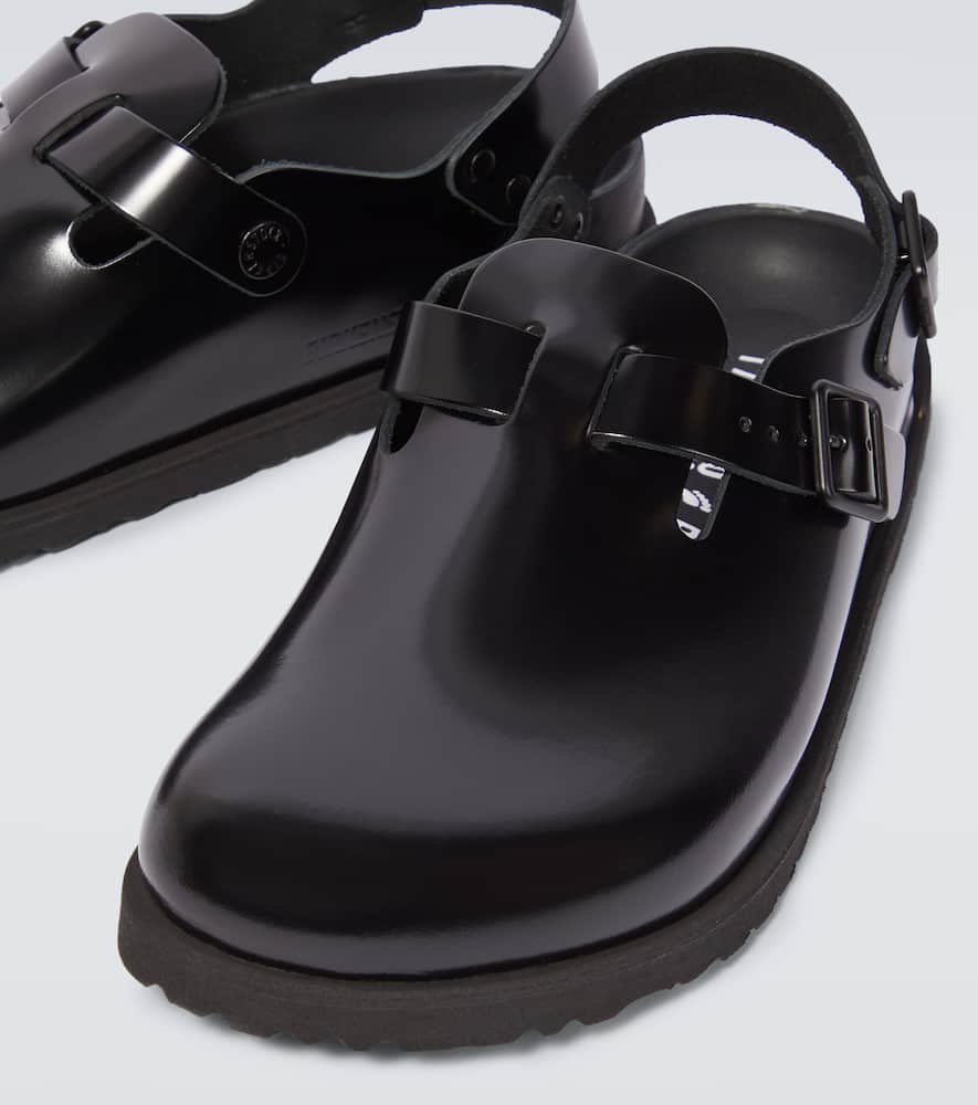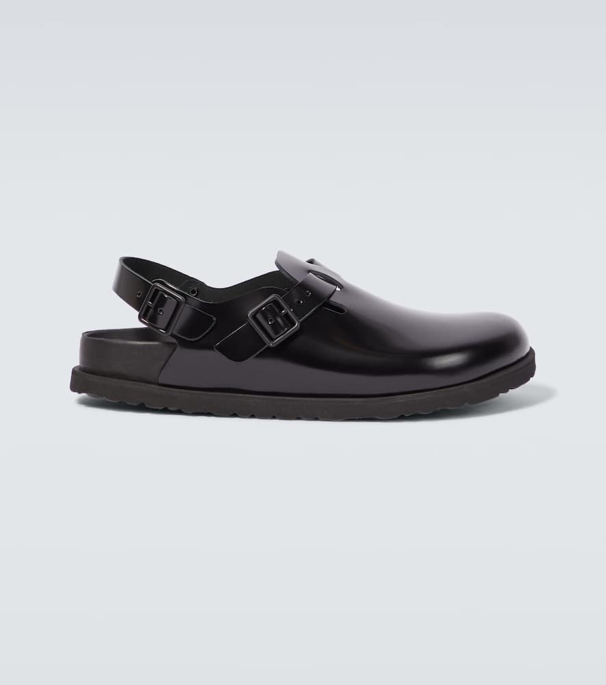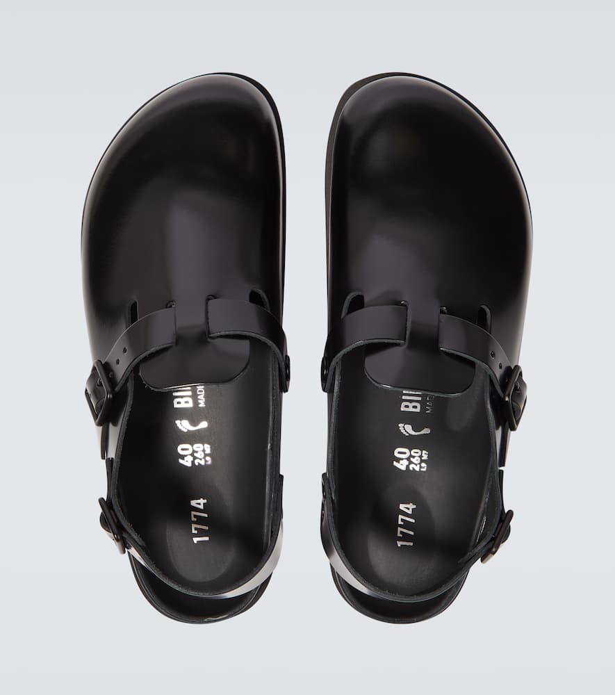 Upper: leather. Lining: leather. Sole: rubber insole and sole. Toe shape: round toe. Made in Germany. Includes: shoe box, dust bag. Designer color name: Black. Shop Birkenstock 1774 Sandals & Slides for men and other designer shoes now.