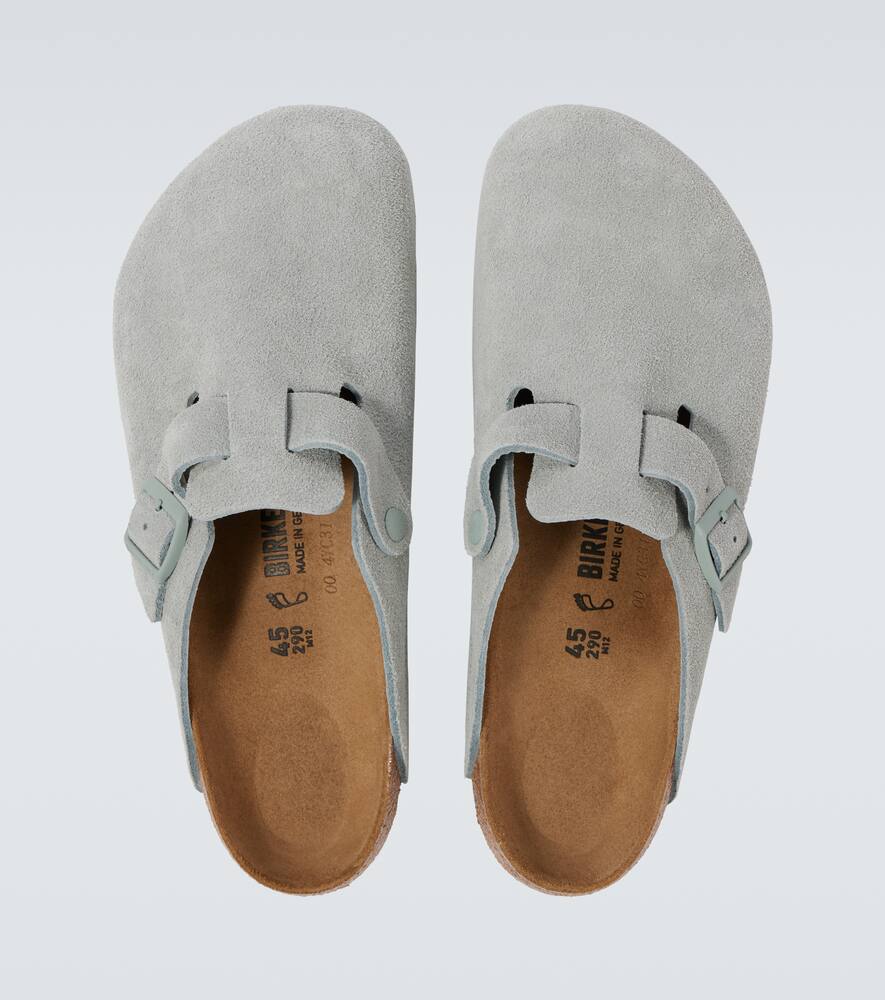 Upper: leather. Lining: leather. Sole: leather insole, rubber sole. Toe shape: round toe. Made in Germany. Includes: shoe box. Designer color name: Pure Sage. Closure: buckle fastening. Shop Birkenstock Slippers for men and other designer shoes now.