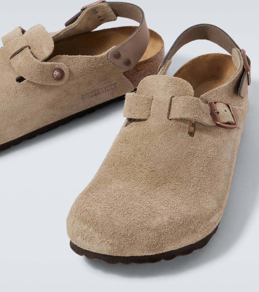 Upper: leather. Lining: leather. Sole: leather insole, rubber sole. Toe shape: round toe. Made in Germany. Includes: shoe box. Designer color name: Taupe. Closure: buckle-fastening ankle strap. Hardware color: bronze. Shop Birkenstock Slippers for men and other designer shoes now.