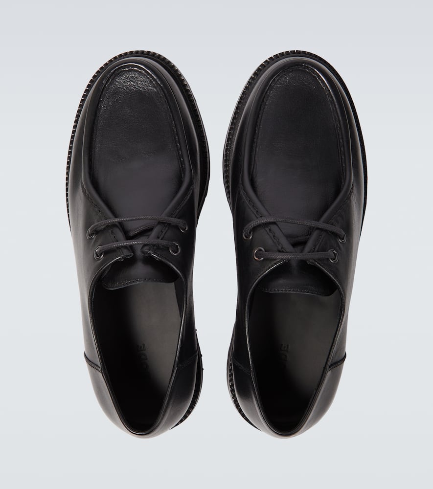 Upper: leather. Lining: leather. Sole: leather insole and sole. Toe shape: almond toe. Made in Italy. Includes: shoe box, dust bag. Designer color name: Black. Closure: lace-up. Shop Bode Derby Shoes for men and other designer shoes now.