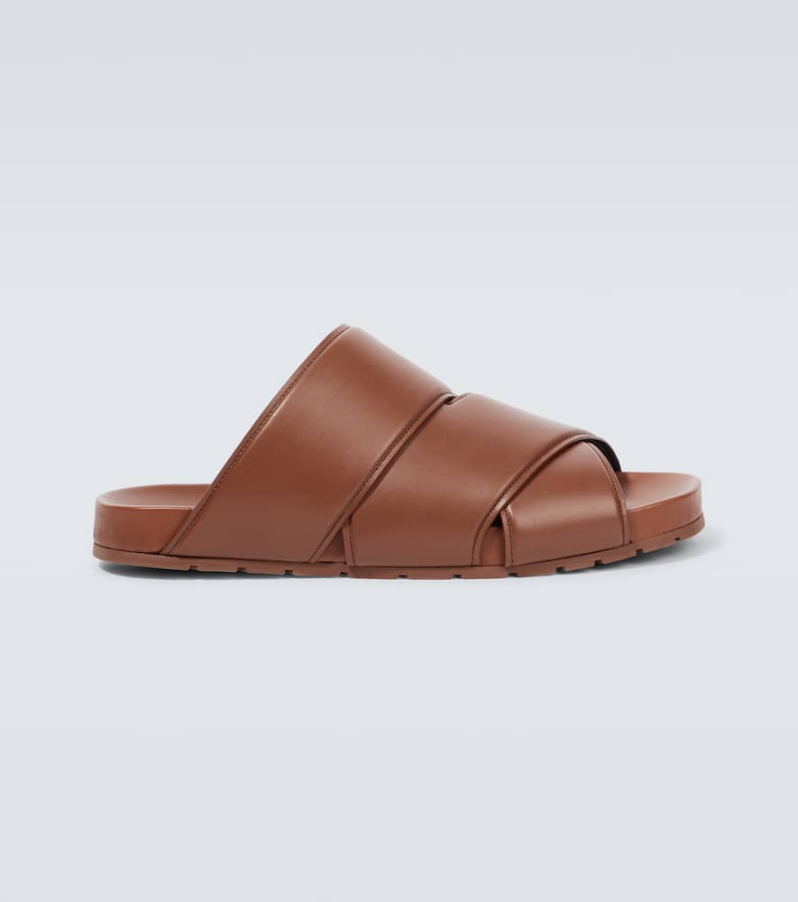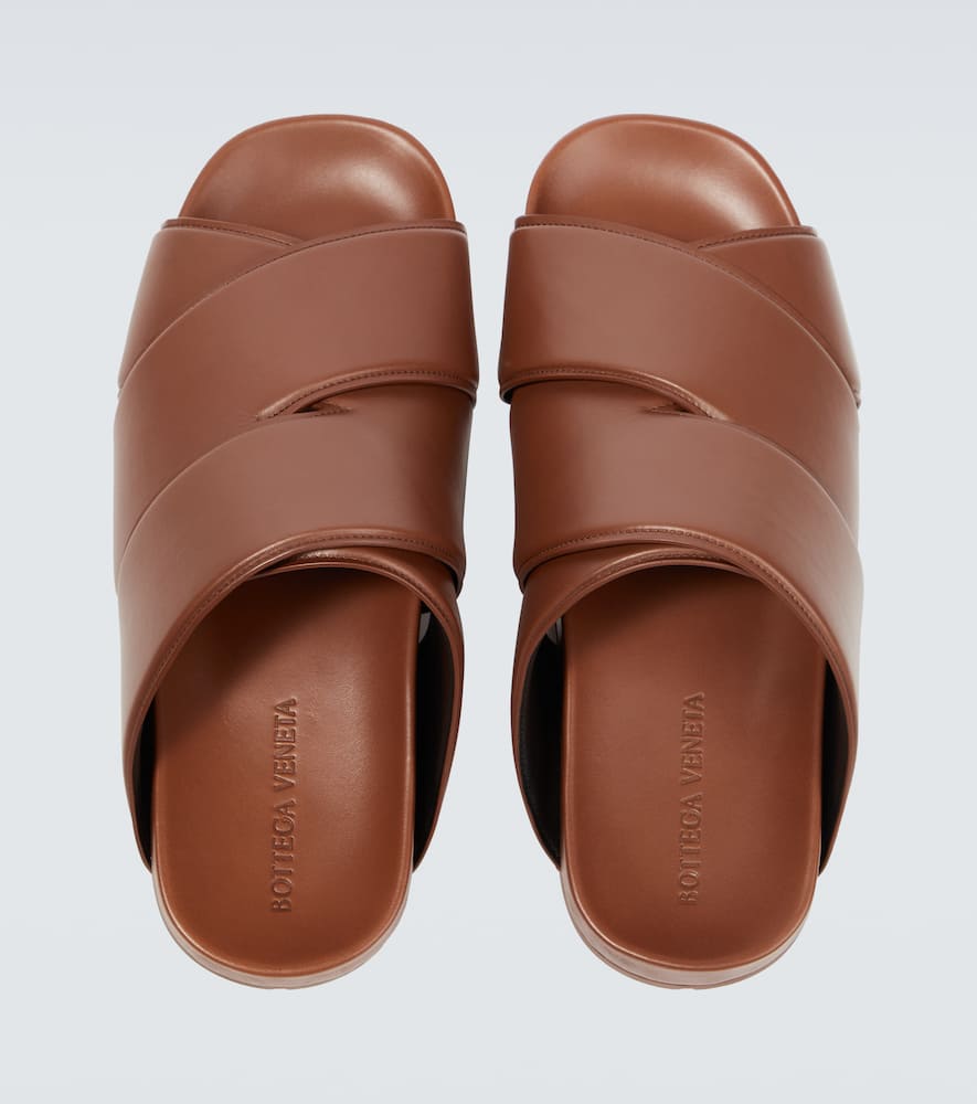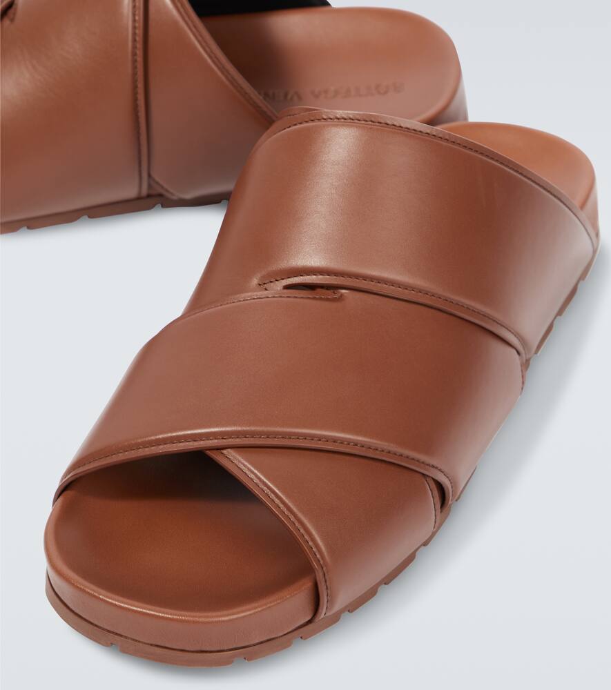 Sole: leather insole, rubber sole. Upper: leather. Comes with dust bags. Toe shape: round open toe. Designer color name: Brown Sugar. Made in Italy. Shop Bottega Veneta Sandals & Slides for men and other designer shoes now.