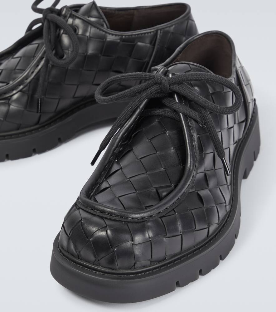 Upper: leather. Lining: leather. Sole: leather insole, rubber sole. Toe shape: square toe. Made in Italy. Includes: shoe box, dust bags. Designer color name: Black. Closure: lace-up. Shop Bottega Veneta Derby for men and other designer shoes now.