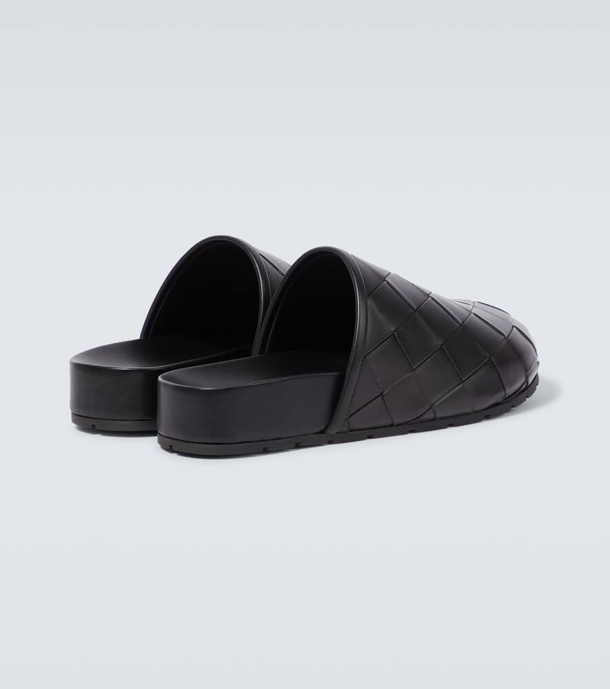 Upper: calf leather. Lining: leather. Sole: leather insole, rubber sole. Toe shape: round toe. Made in Italy. Includes: dust bags, shoe box. Designer color name: Black. Shop Bottega Veneta Slippers for men and other designer shoes now.