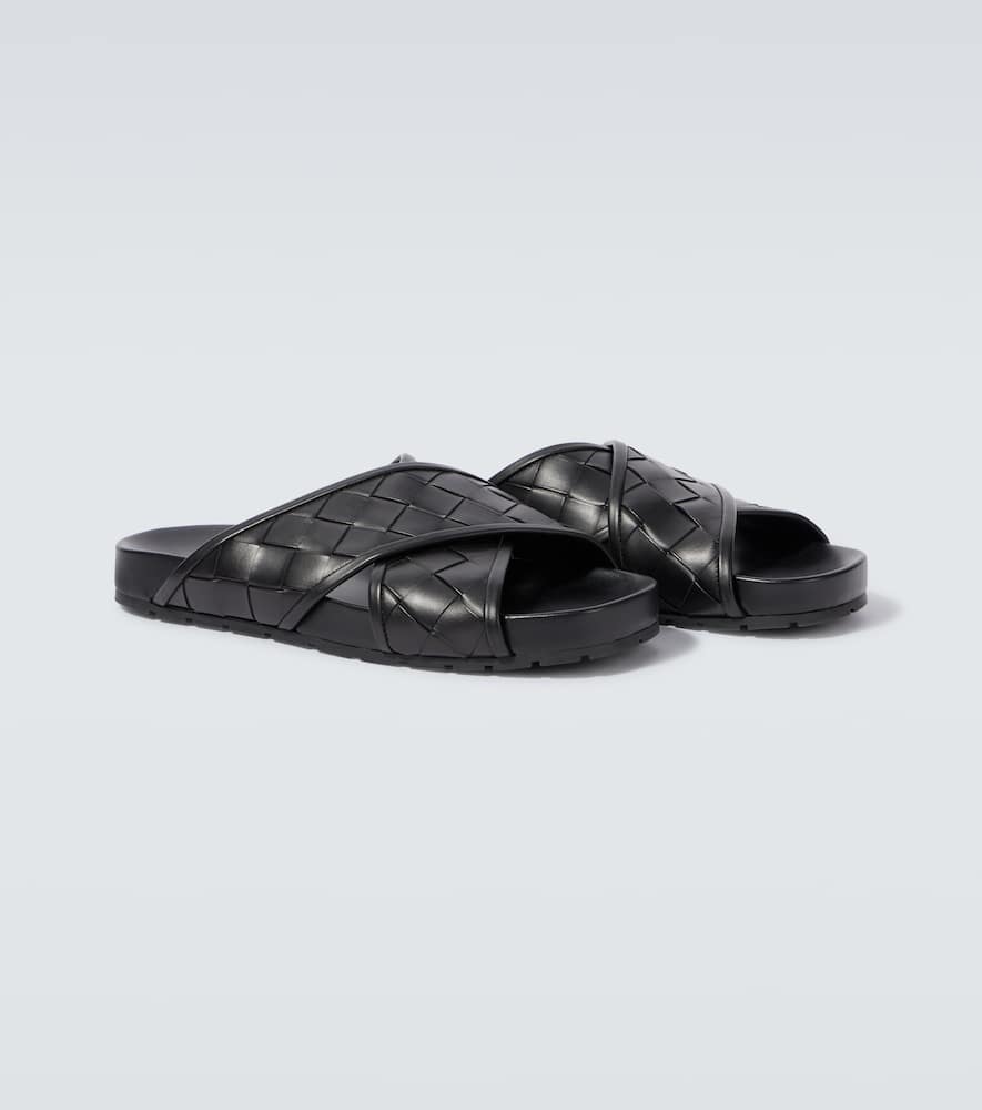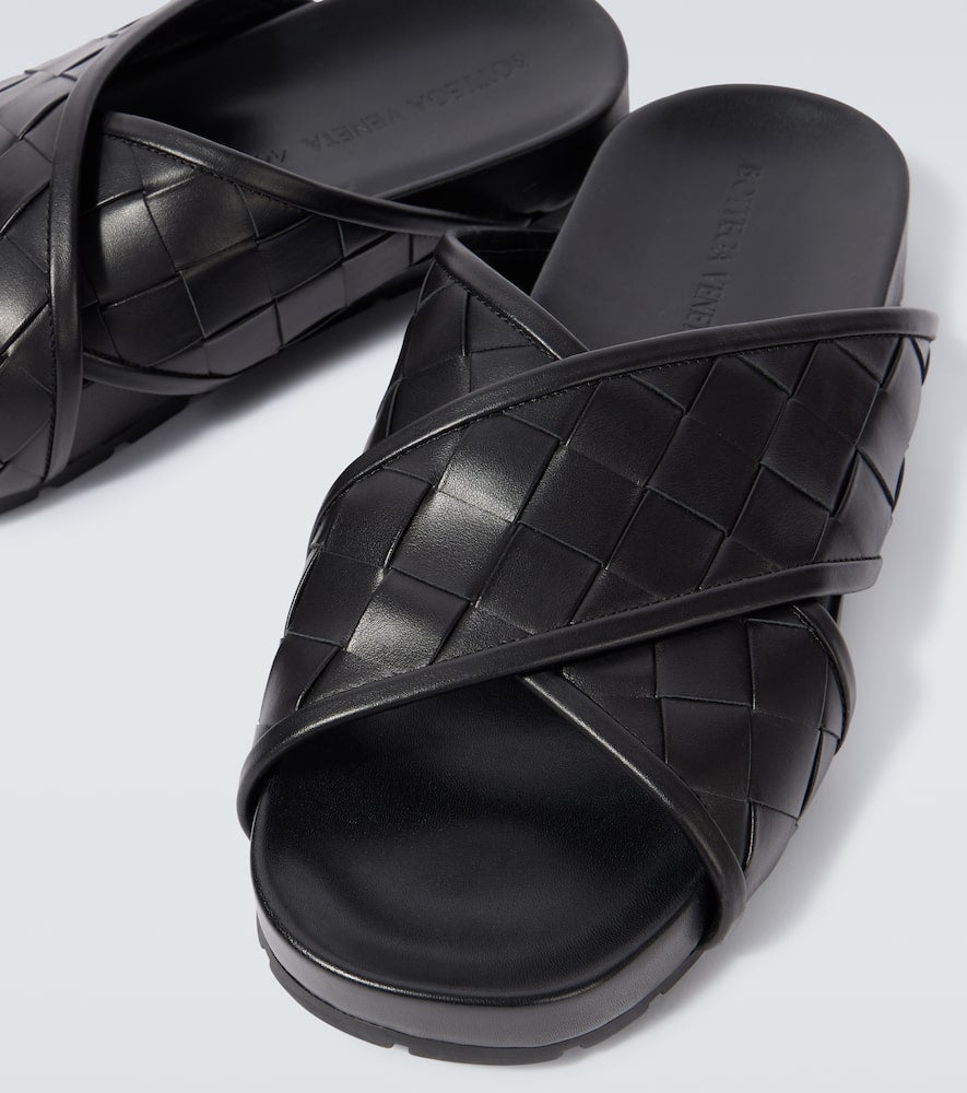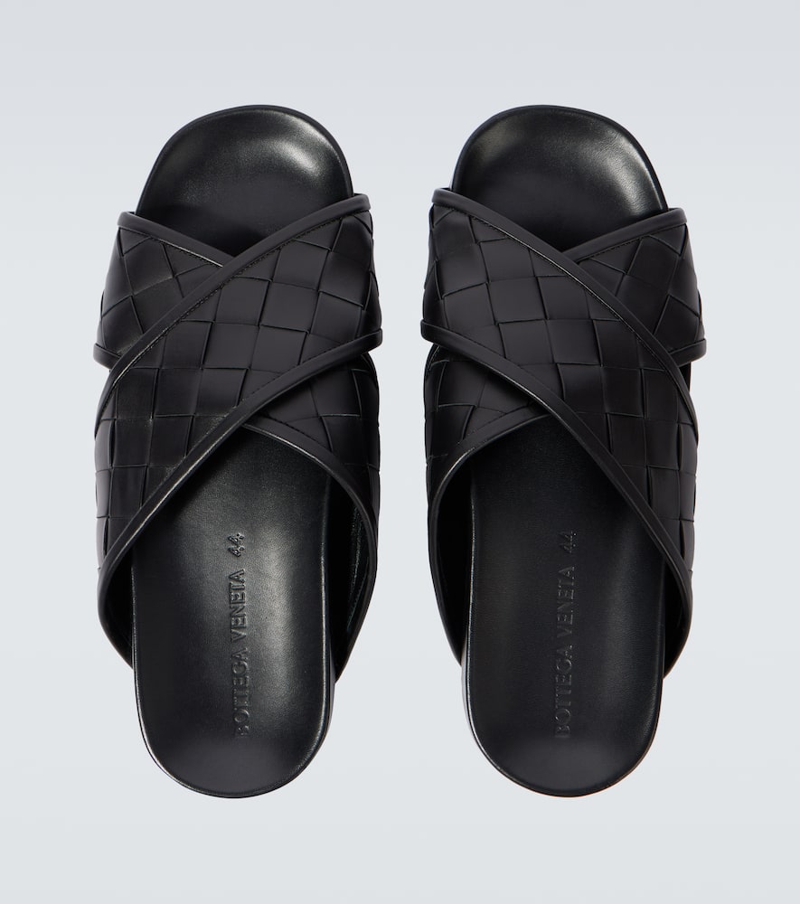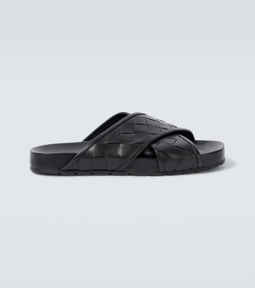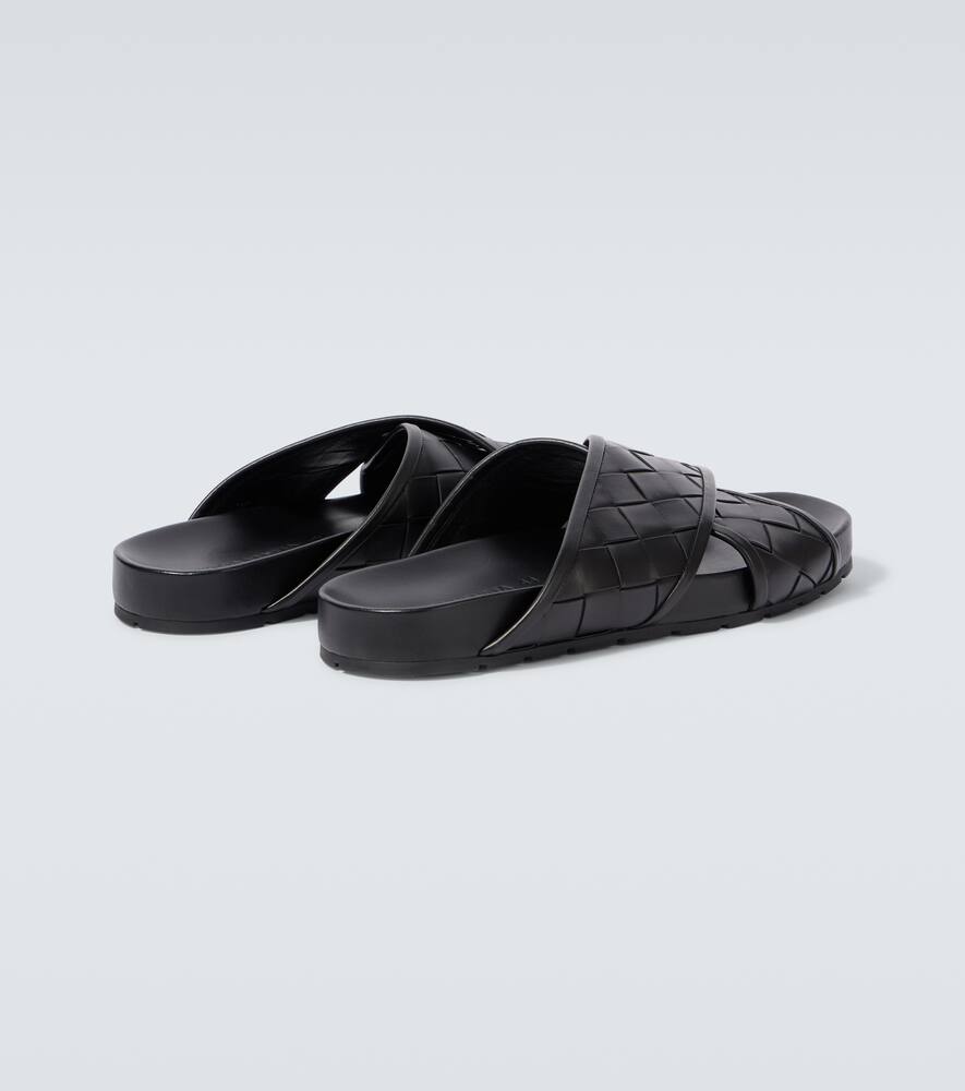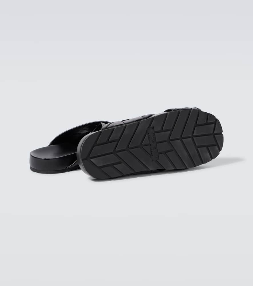 Upper: leather. Lining: leather. Sole: leather insole, rubber sole. Toe shape: round open toe. Made in Italy. Includes: shoe box, dust bags. Designer color name: Black. Shop Bottega Veneta Sandals & Slides for men and other designer shoes now.