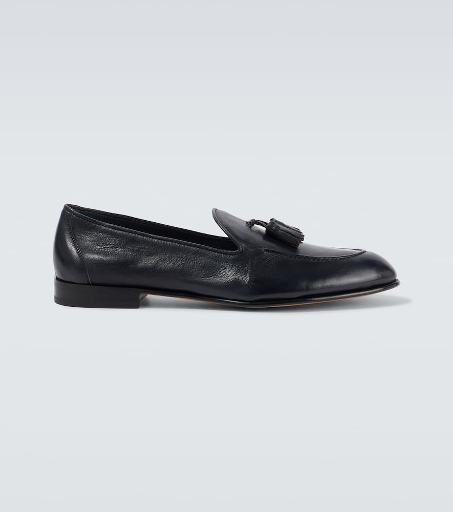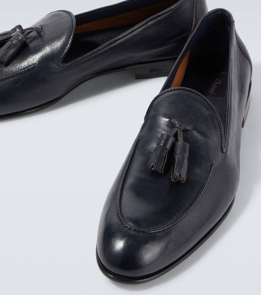Upper: leather. Lining: leather. Sole: leather insole and sole. Toe shape: almond toe. Made in Italy. Includes: shoe box, dust bags. Designer color name: Midnight Blue. Shop Brioni Loafers for men and other designer shoes now.