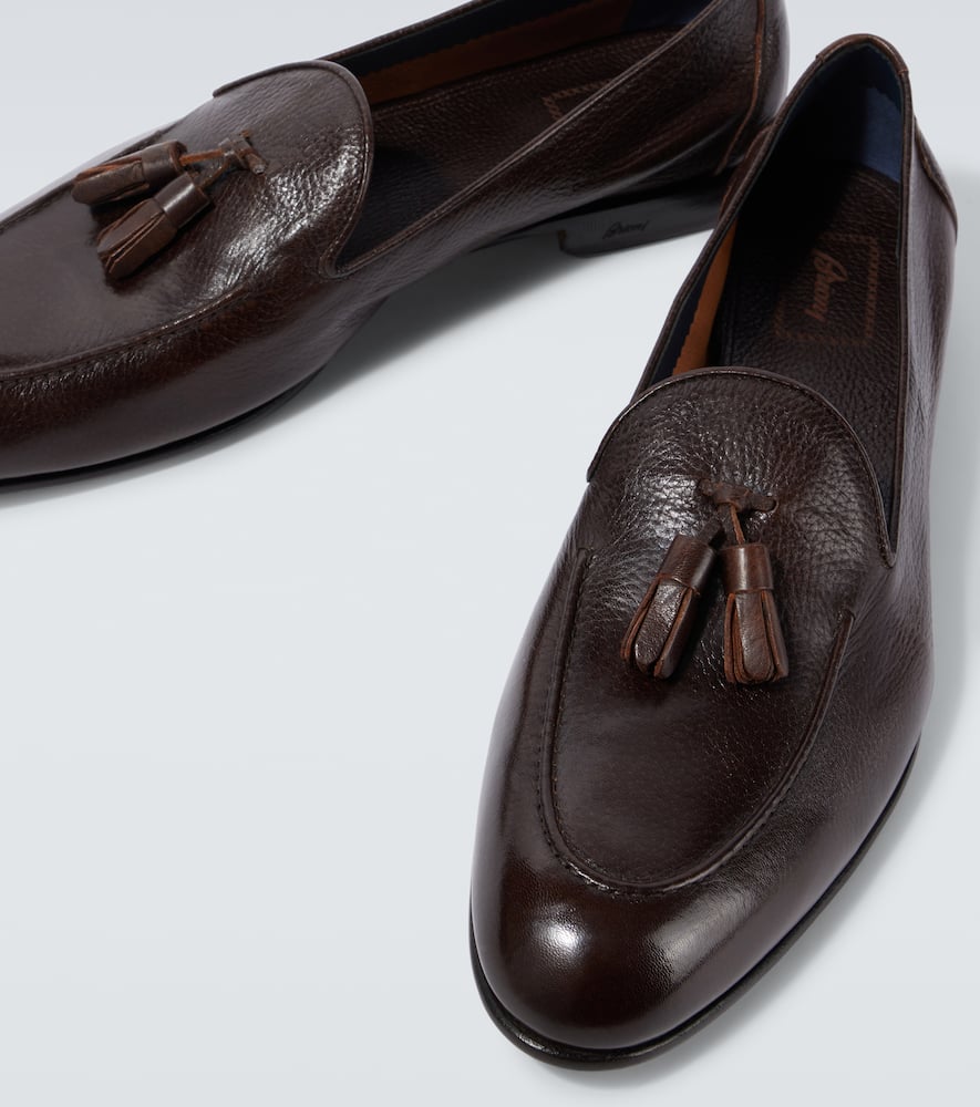 Upper: leather. Lining: leather. Sole: leather insole and sole. Toe shape: almond toe. Made in Italy. Includes: dust bags, shoe box. Designer color name: Coffee. Shop Brioni Loafers for men and other designer shoes now.
