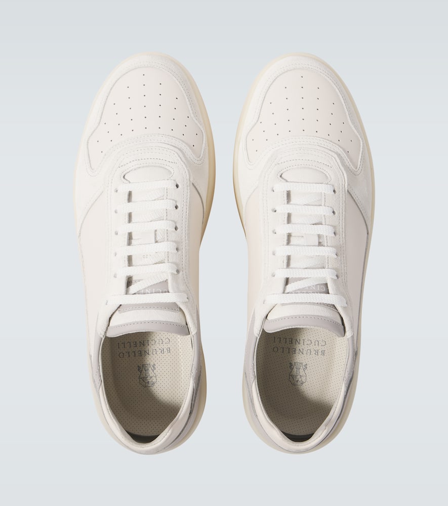 Upper: leather, rubber. Lining: leather. Sole: leather insole, rubber sole. Toe shape: round toe. Made in Italy. Includes: shoe box, dust bag. Designer color name: Latte. Closure: lace-up. Shop Brunello Cucinelli Designer Sneakers for men and other designer shoes now.